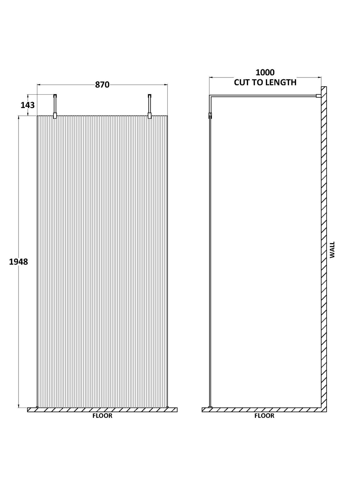 Fluted design ideal for infusing Art Deco elegance into your bathroom. Creates additional privacy. Easy clean. Height 1950mm. Features 8mm toughened safety glass.