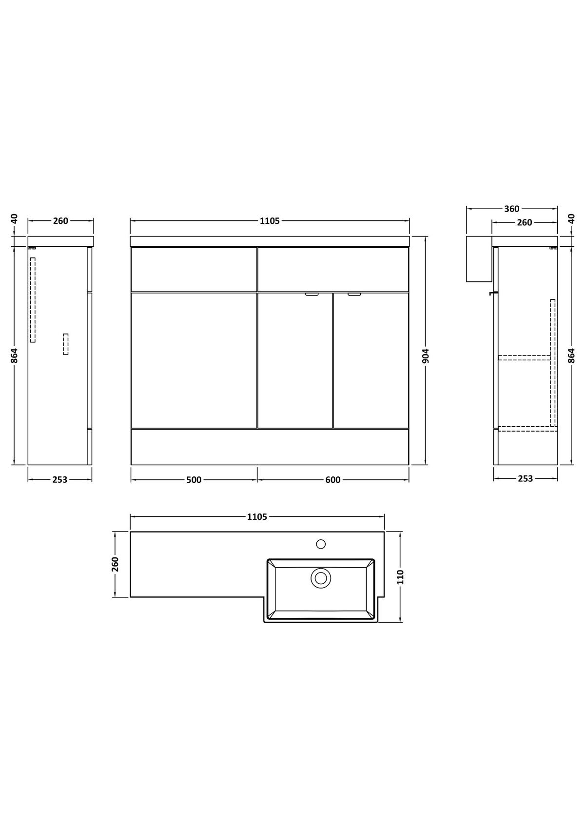 1100mm Combination Unit & Right Hand Semi Recessed Basin