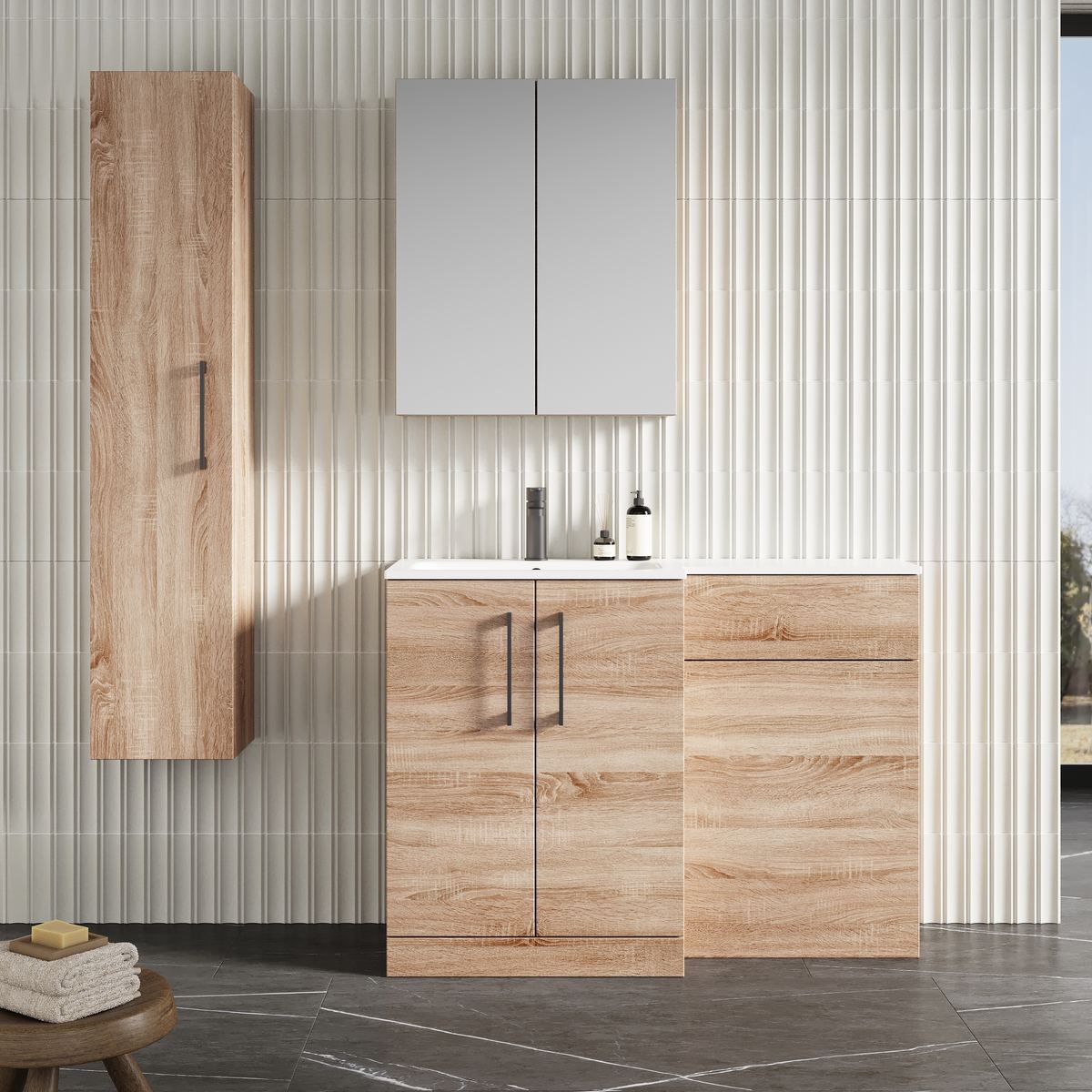 Contemporary floor standing design provides ample storage for all your bathroom toiletries and cleaning supplies. Available in a variety of sleek colour ways. Soft close doors ensures peace ensues throughout your home. Supplied rigid for easy installation. Stone basin pre-drilled with 1 tap hole.