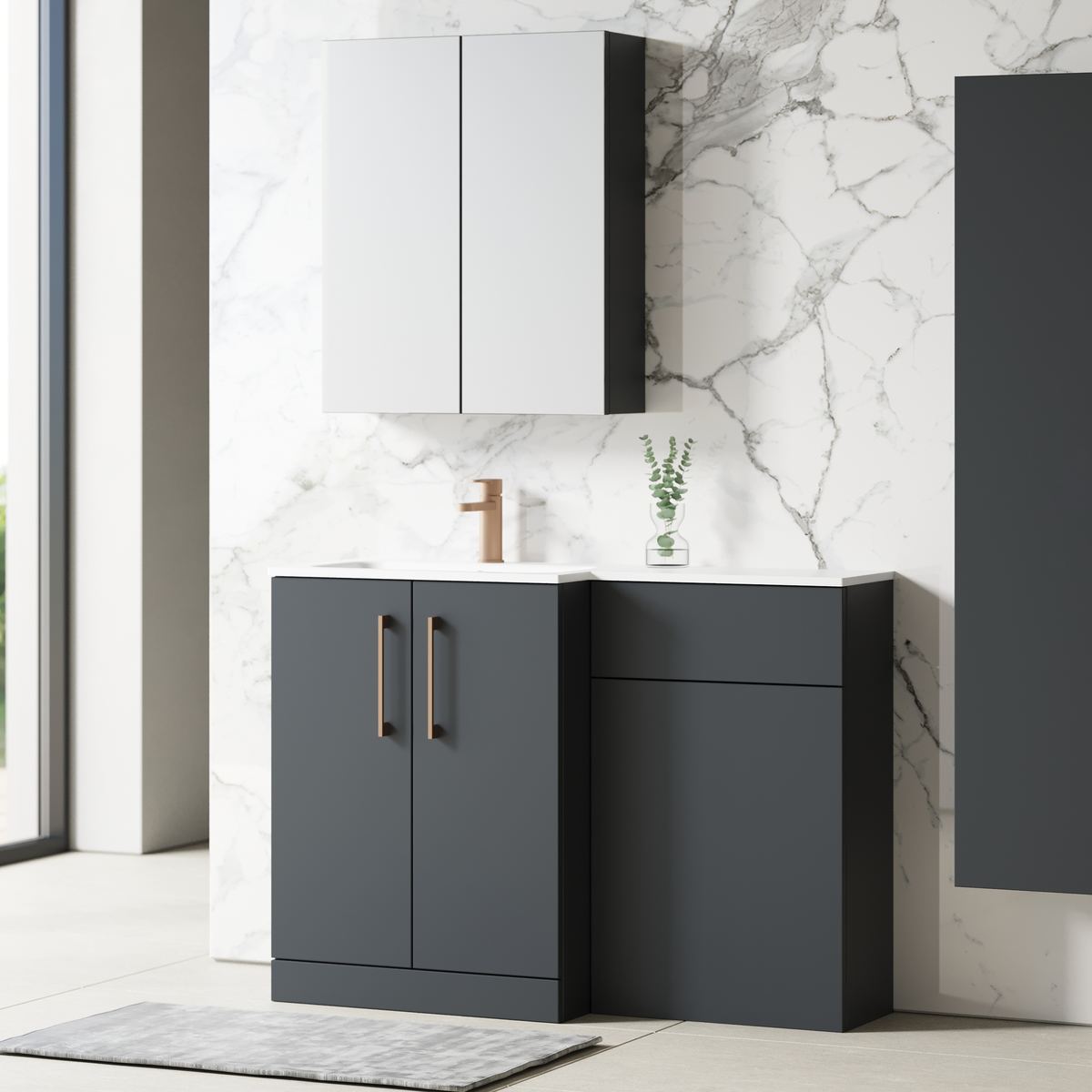 Contemporary floor standing design provides ample storage for all your bathroom toiletries and cleaning supplies. Available in a variety of sleek colour ways. Soft close doors ensures peace ensues throughout your home. Supplied rigid for easy installation. Stone basin pre-drilled with 1 tap hole.