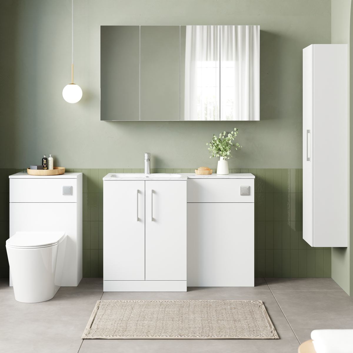 Contemporary floor standing design provides ample storage for all your bathroom toiletries and cleaning supplies. Available in a variety of sleek colour ways. Soft close doors ensures peace ensues throughout your home. Supplied rigid for easy installation. Stone basin pre-drilled with 1 tap hole.