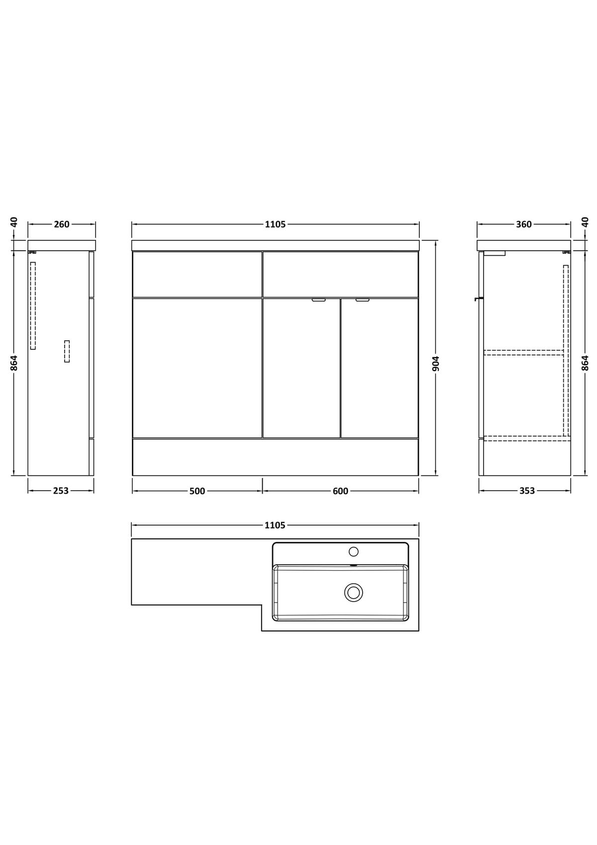 – Product Width: 1105 mm