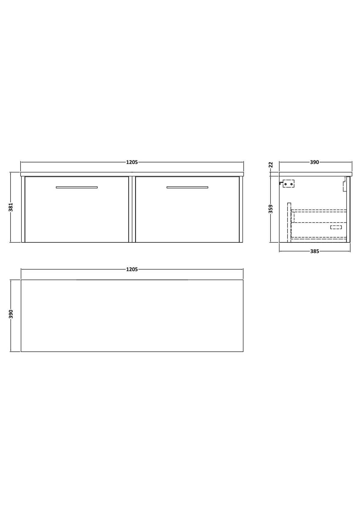 1200 Wall Hung 2-Drawer Vanity & Laminate Worktop
