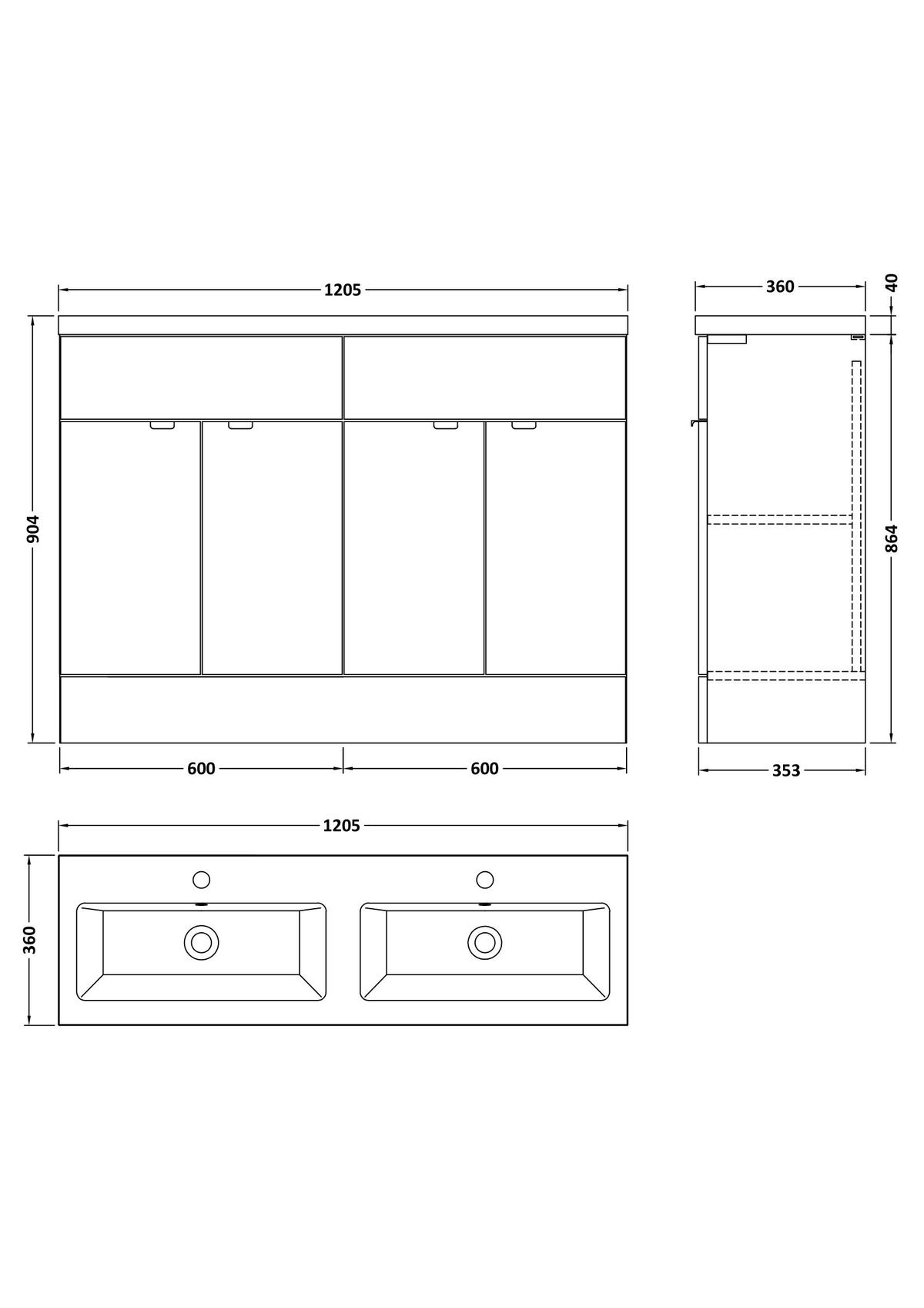 1200mm Floor Standing 4-Door Vanity & Double Basin