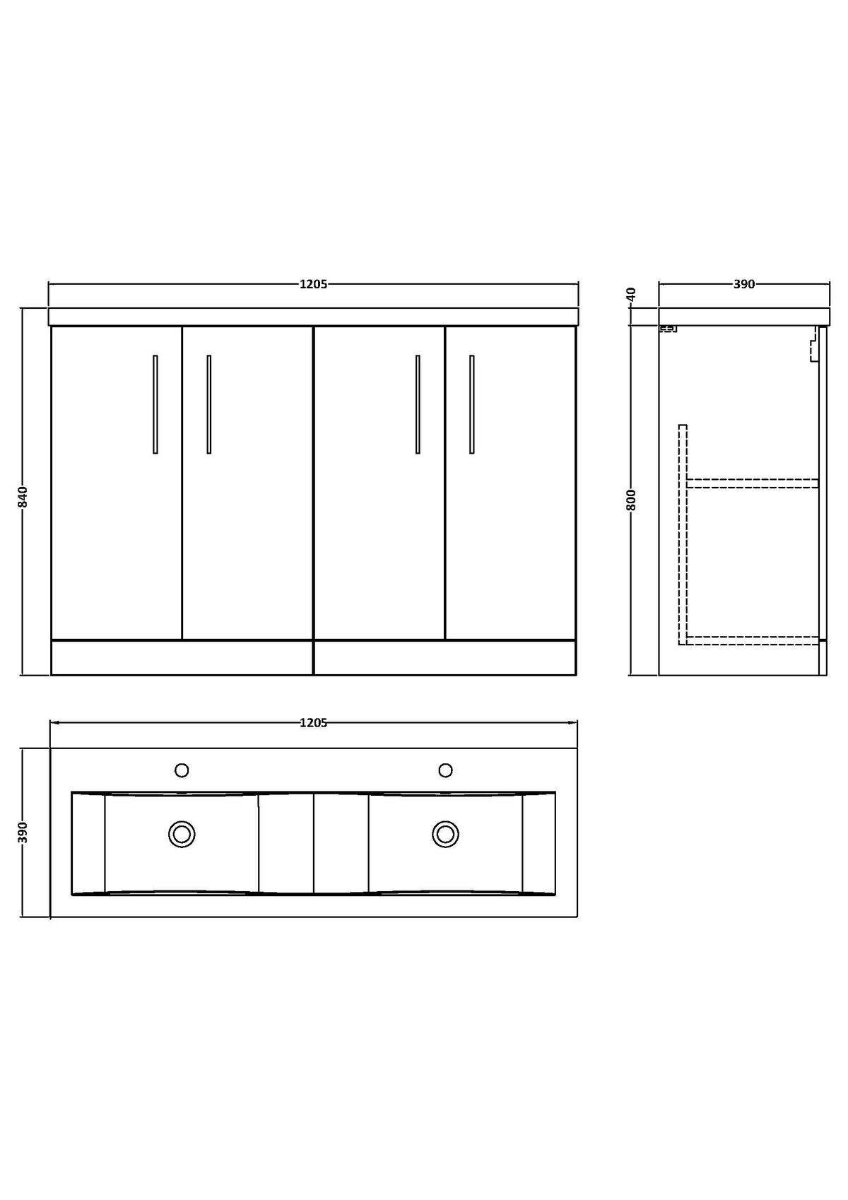 1200mm Floor Standing 4 Door Vanity & Double Basin