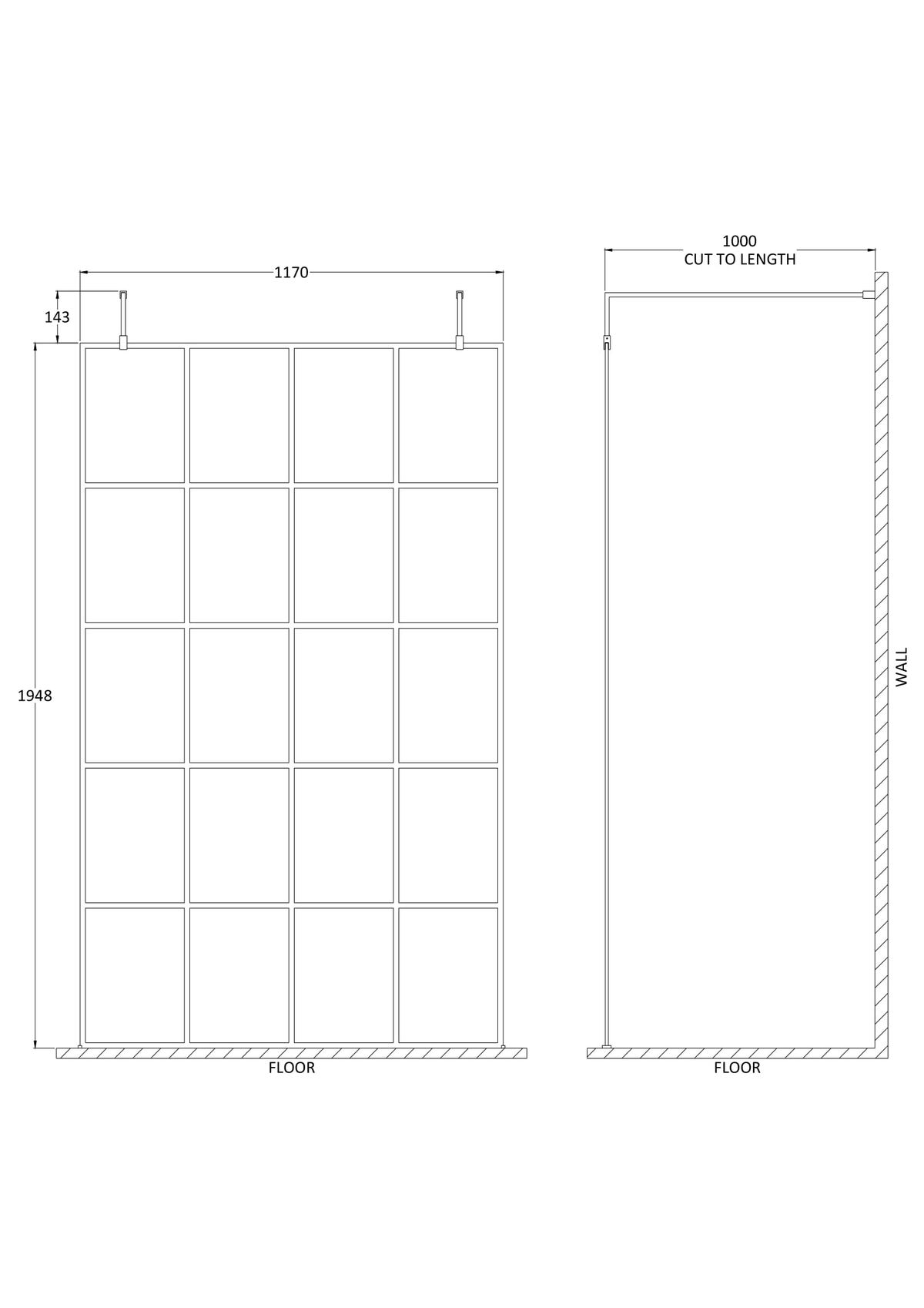 8mm toughened safety glass. Single-sided ‘Shower Shield’ coated glass. Shower tray sold separately. Includes matte black support arms. Stylish frame effect design.