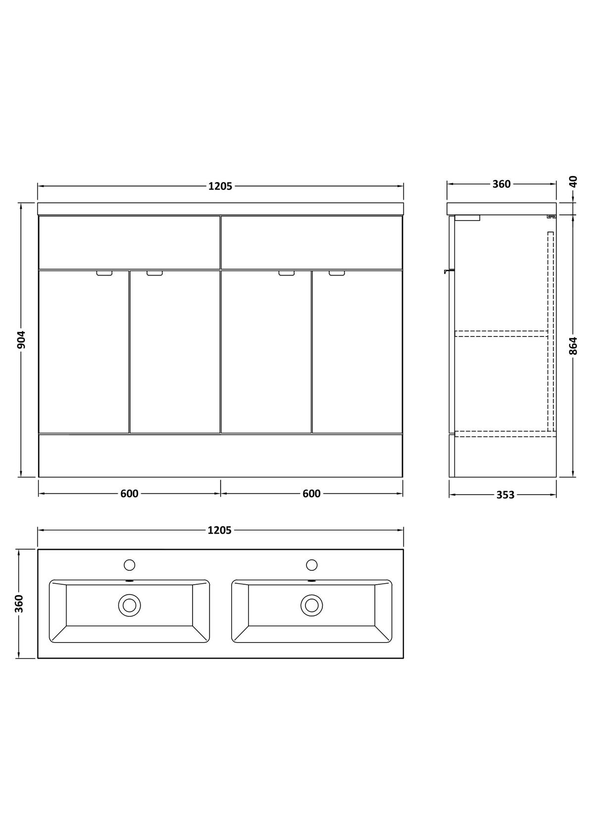 1200mm Vanity Unit & Double Ceramic Basin