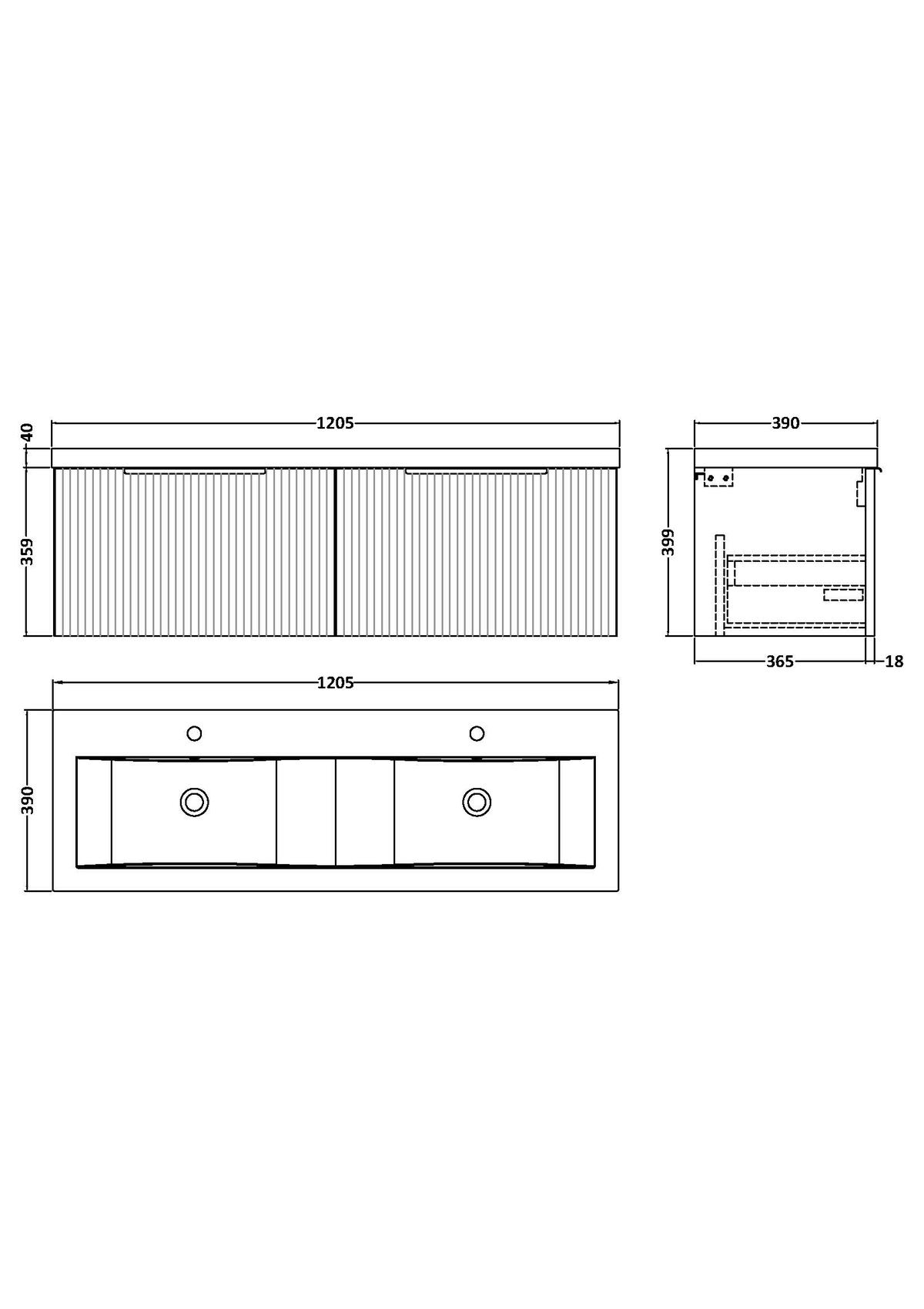 1200mm Wall Hung 2 Drawer Vanity & Double Basin