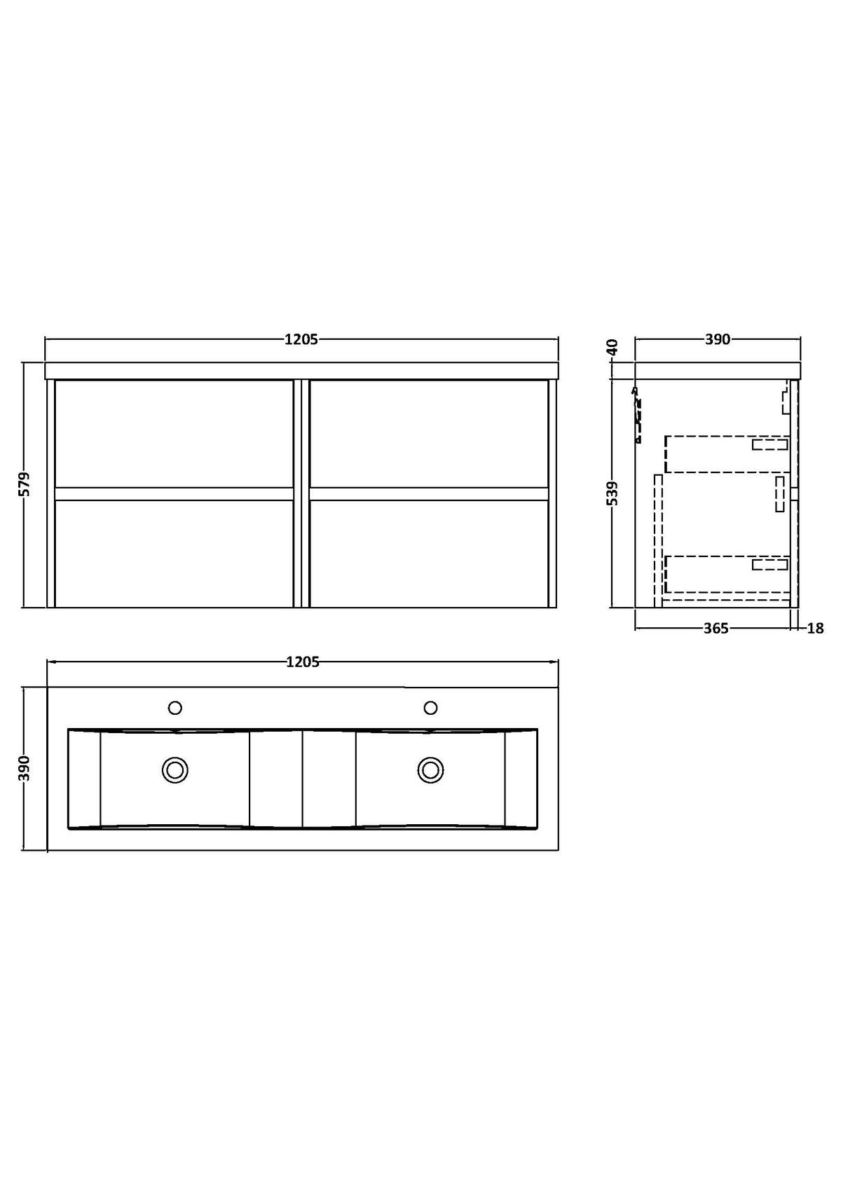 1200mm Wall Hung 4 Drawer Unit & Double Basin