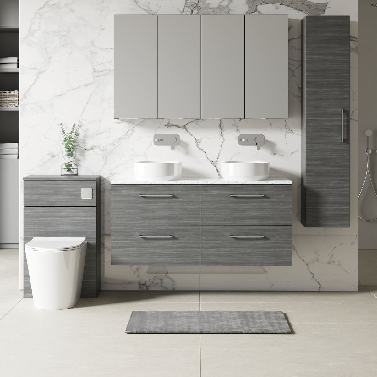 1200mm Wall Hung 4-Drawer Vanity & Laminate Worktop
