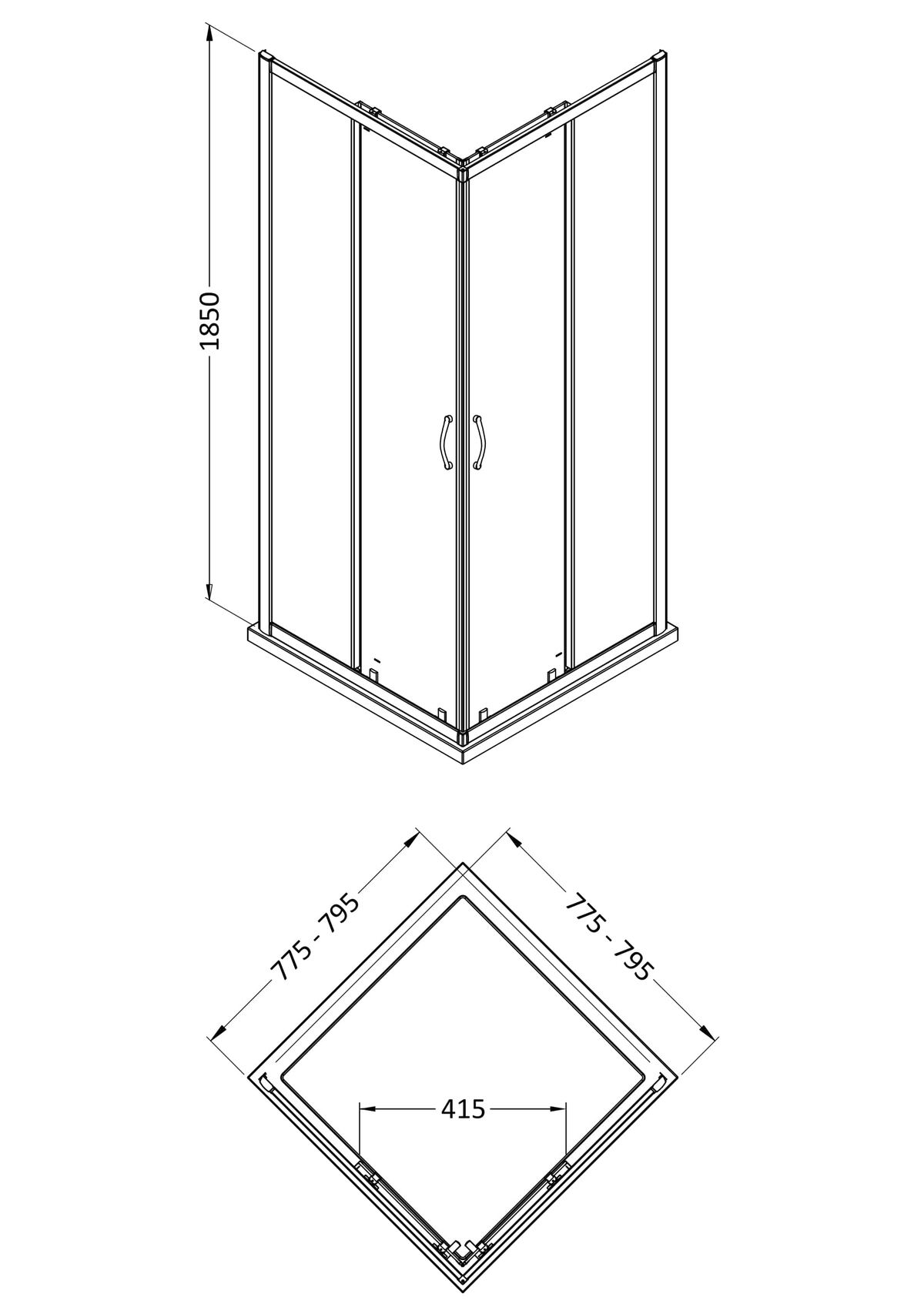 1850 x 800mm Corner Entry Shower Enclosure
