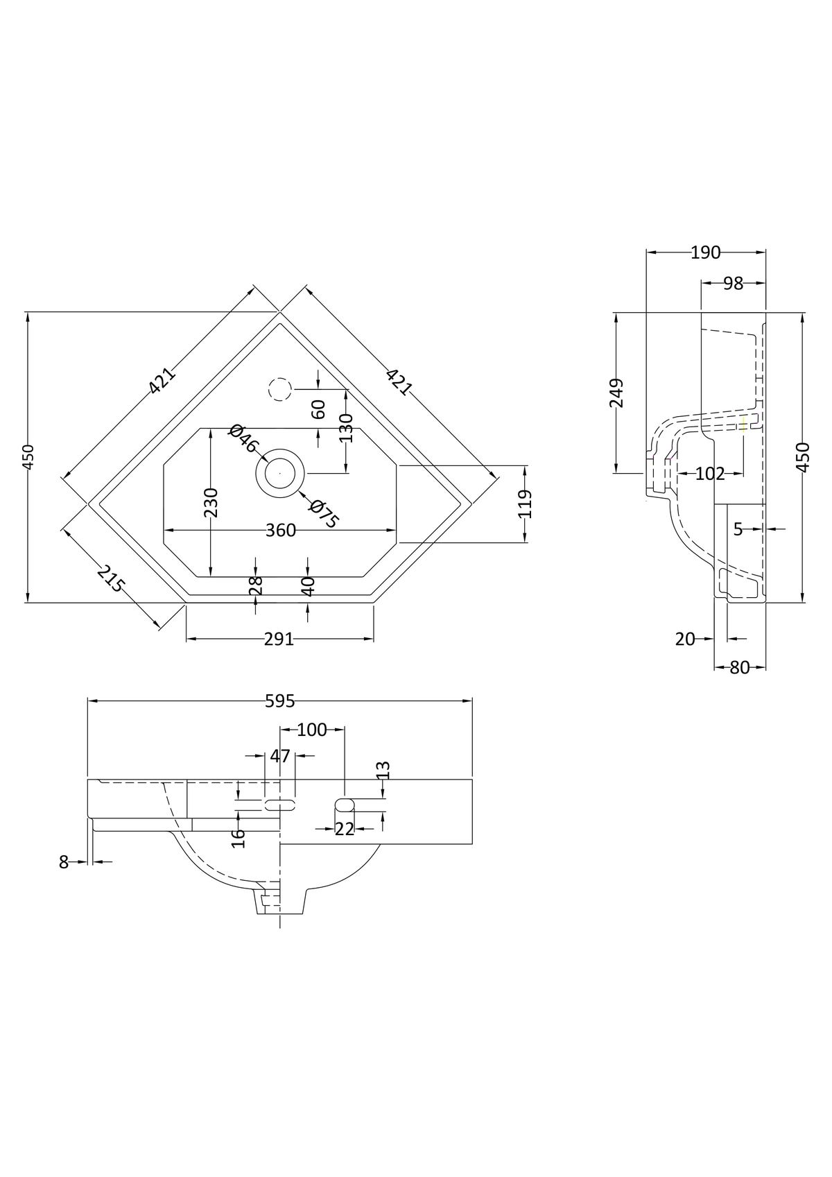 420mm Corner Basin