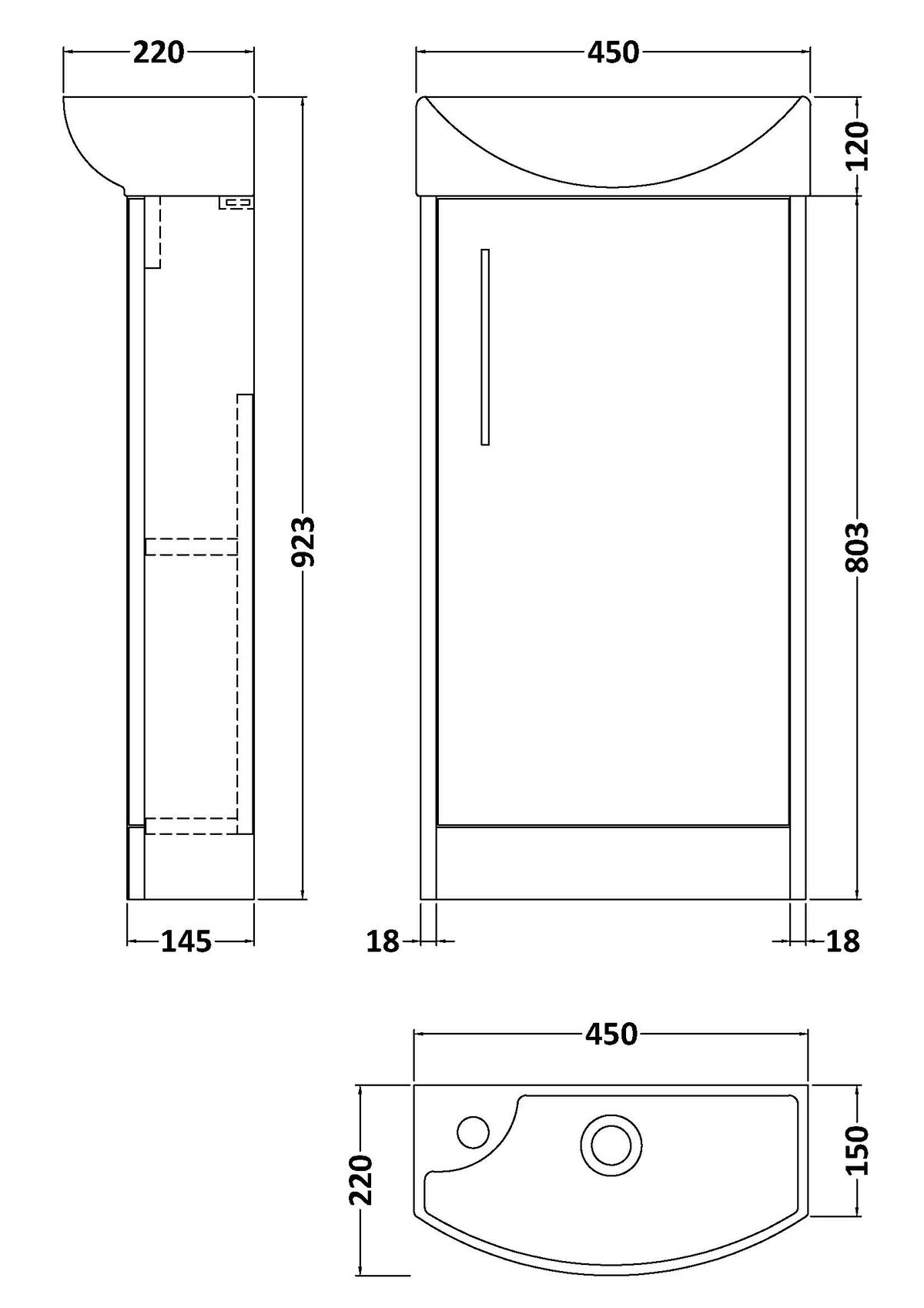 440mm Floor Standing 1 Door Unit & 1TH Basin RH