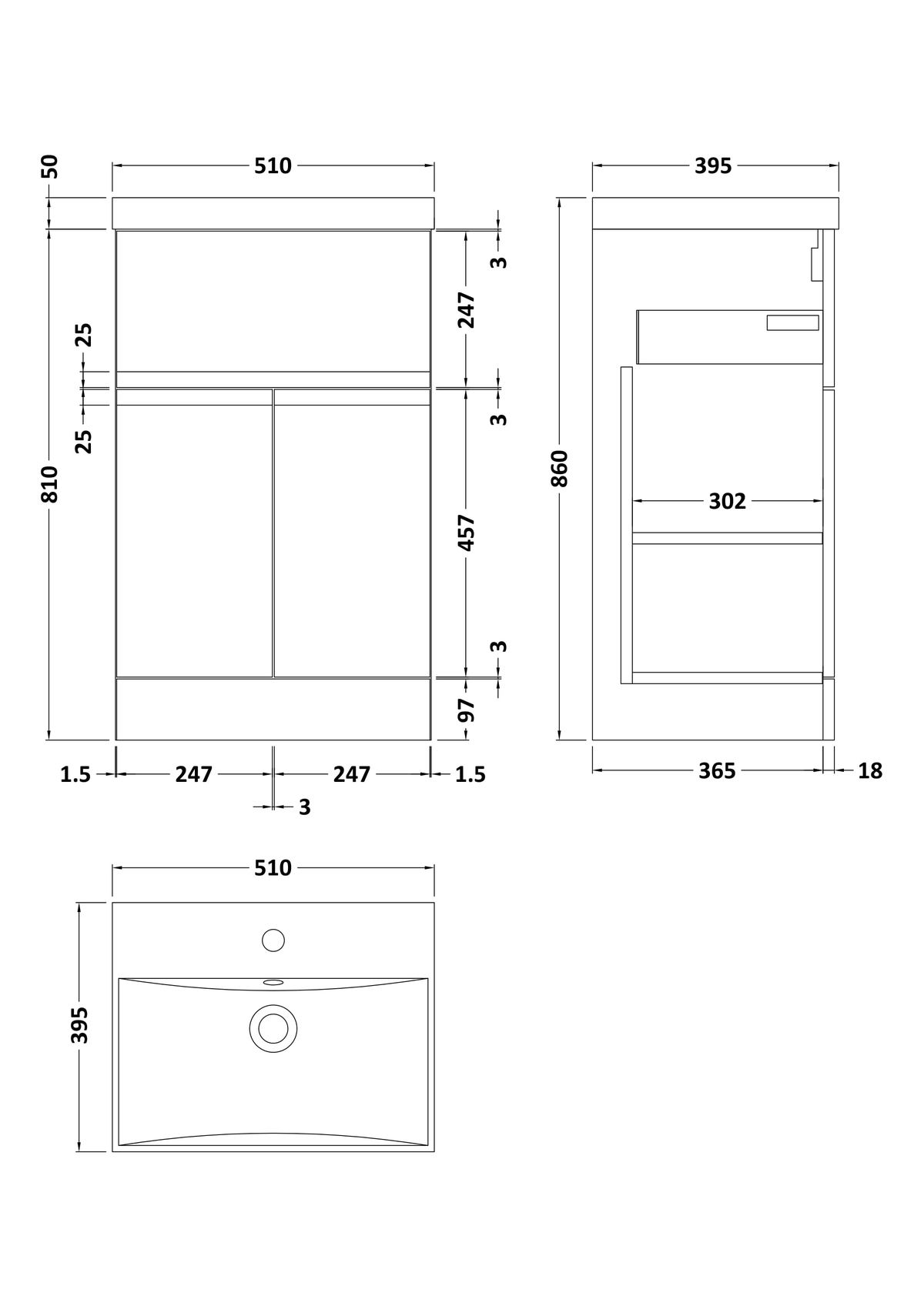 500mm Floor Standing 2 Door/Drawer Vanity & Basin 3