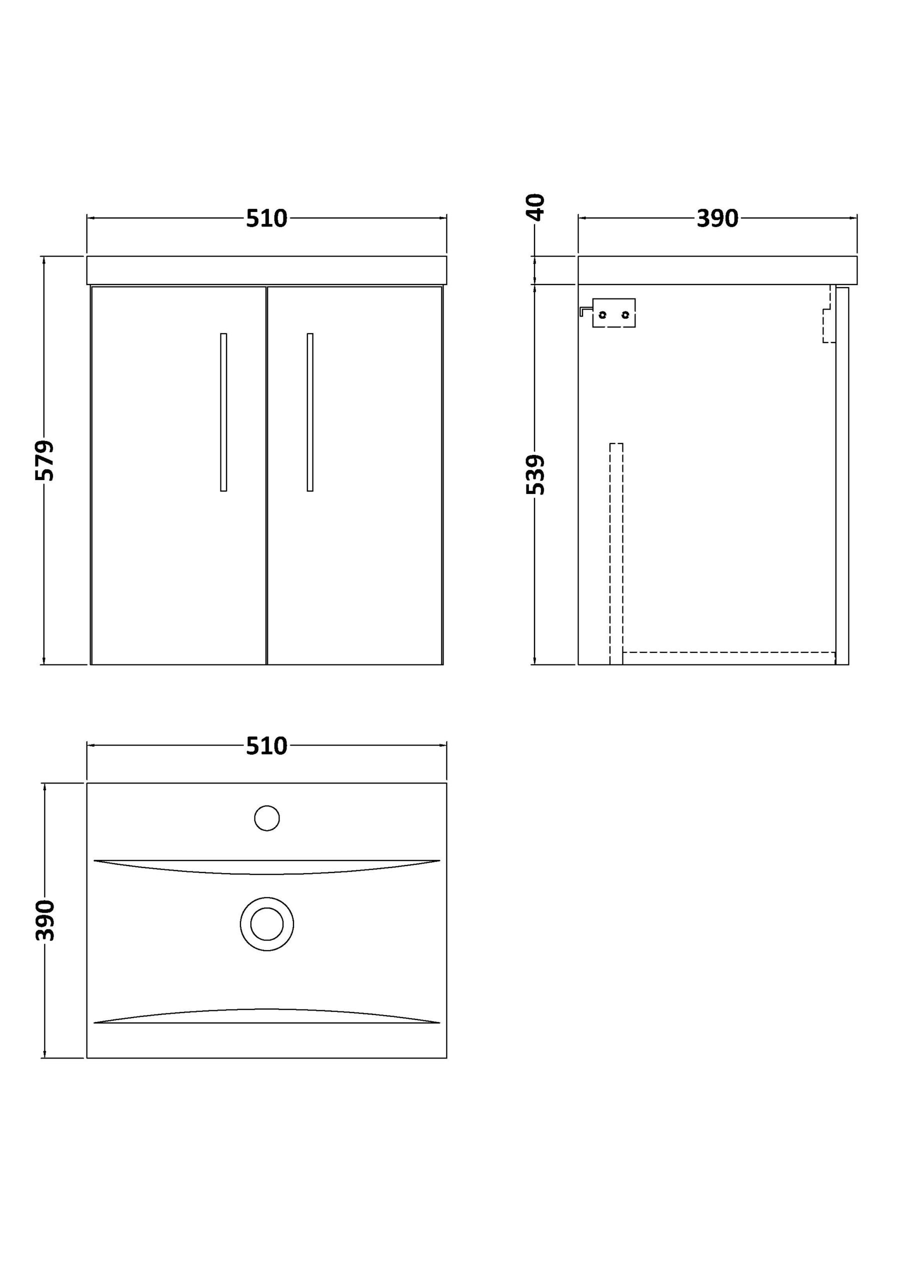 500mm Wall Hung 2 Door Vanity & Basin 1