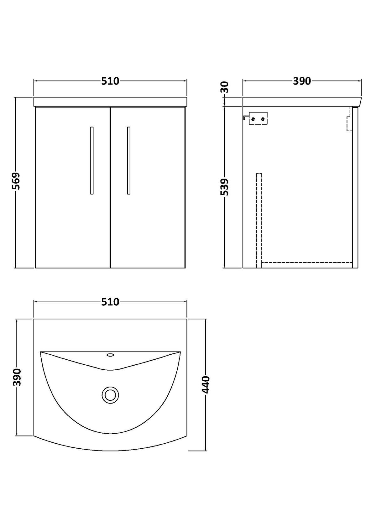 500mm Wall Hung 2 Door Vanity & Basin 4