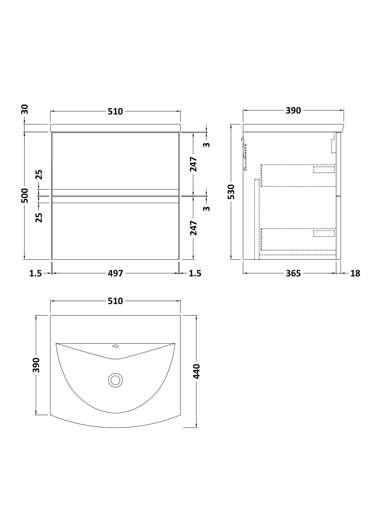 500mm Wall Hung 2 Drawer Vanity Unit & Basin 4