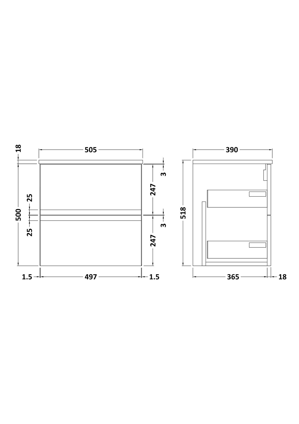 500mm Wall Hung 2-Drawer Vanity Unit & Worktop
