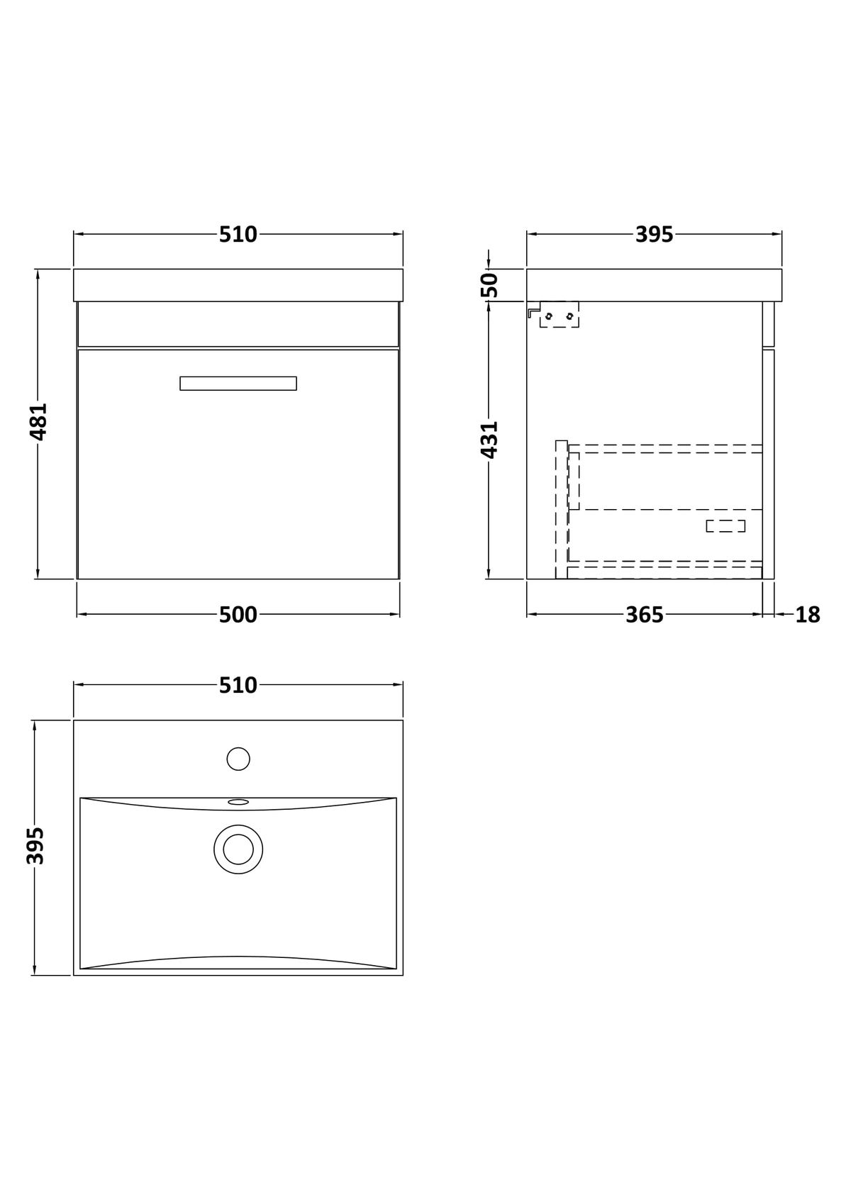 500mm Wall Hung Cabinet With Basin 3