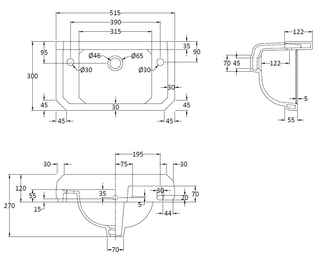 515mm Cloakroom Basin (2 Tap Hole)