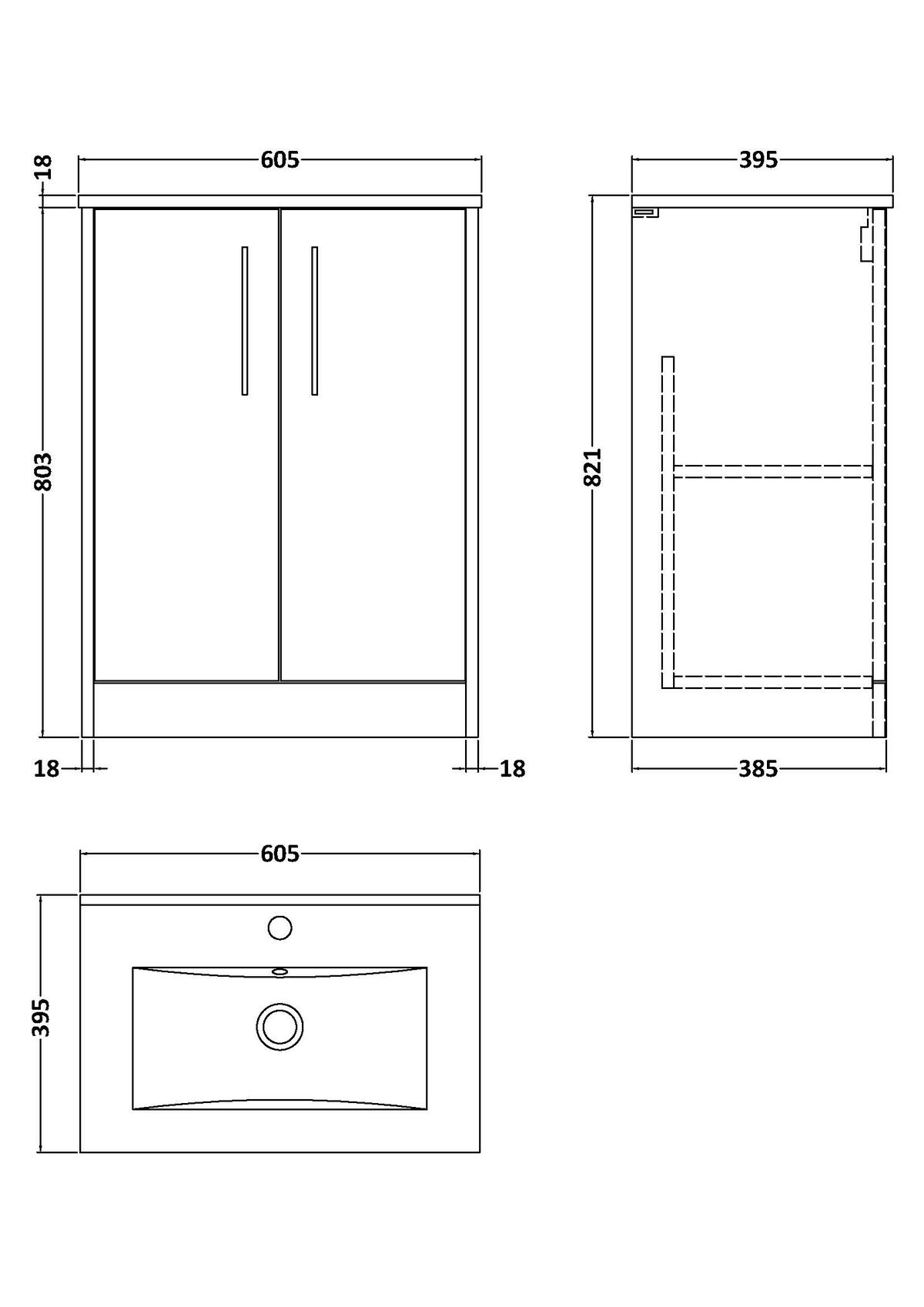 600mm Floor Standing 2 Door Vanity & Basin 2