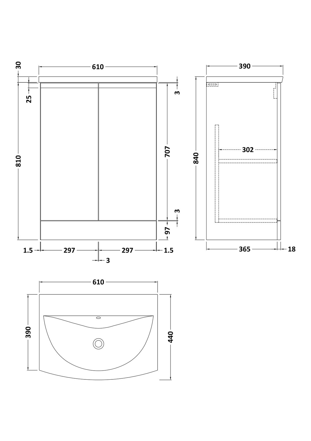600mm Floor Standing 2 Door Vanity Unit & Basin 4