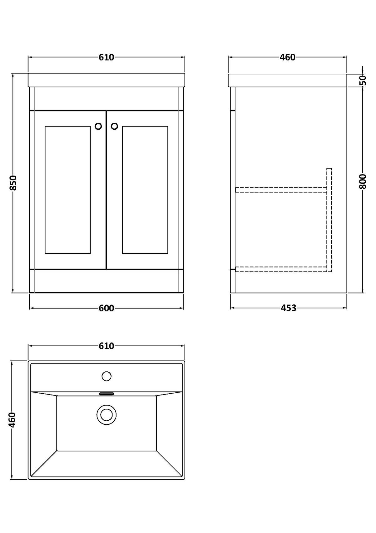 600mm Floor Standing 2-Door Vanity with Basin – 1 Tap Hole