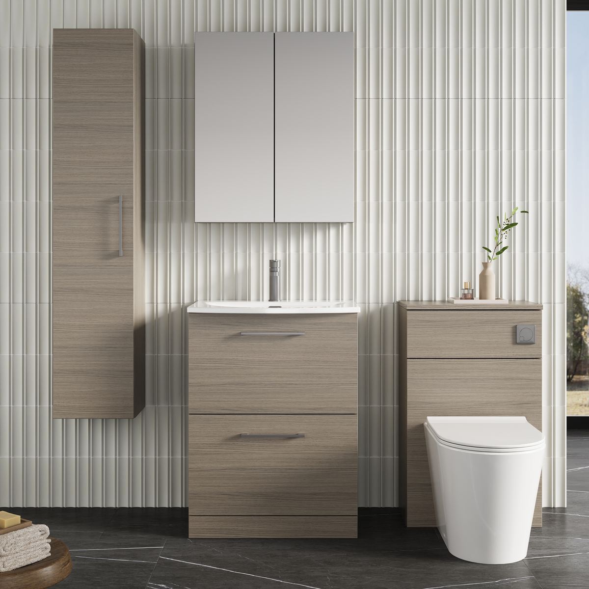 Available in 7 sleek colour ways. Colour co-ordinate with matching vanity unit. Supplied rigid for easy installation. Soft close doors ensures peace ensues throughout your home. Vitreous china basin pre-drilled with 1 tap hole.