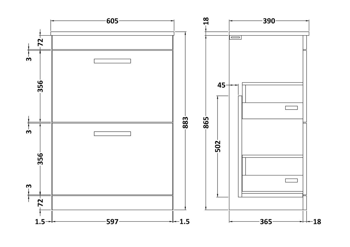 600mm Floor Standing Cabinet With Worktop