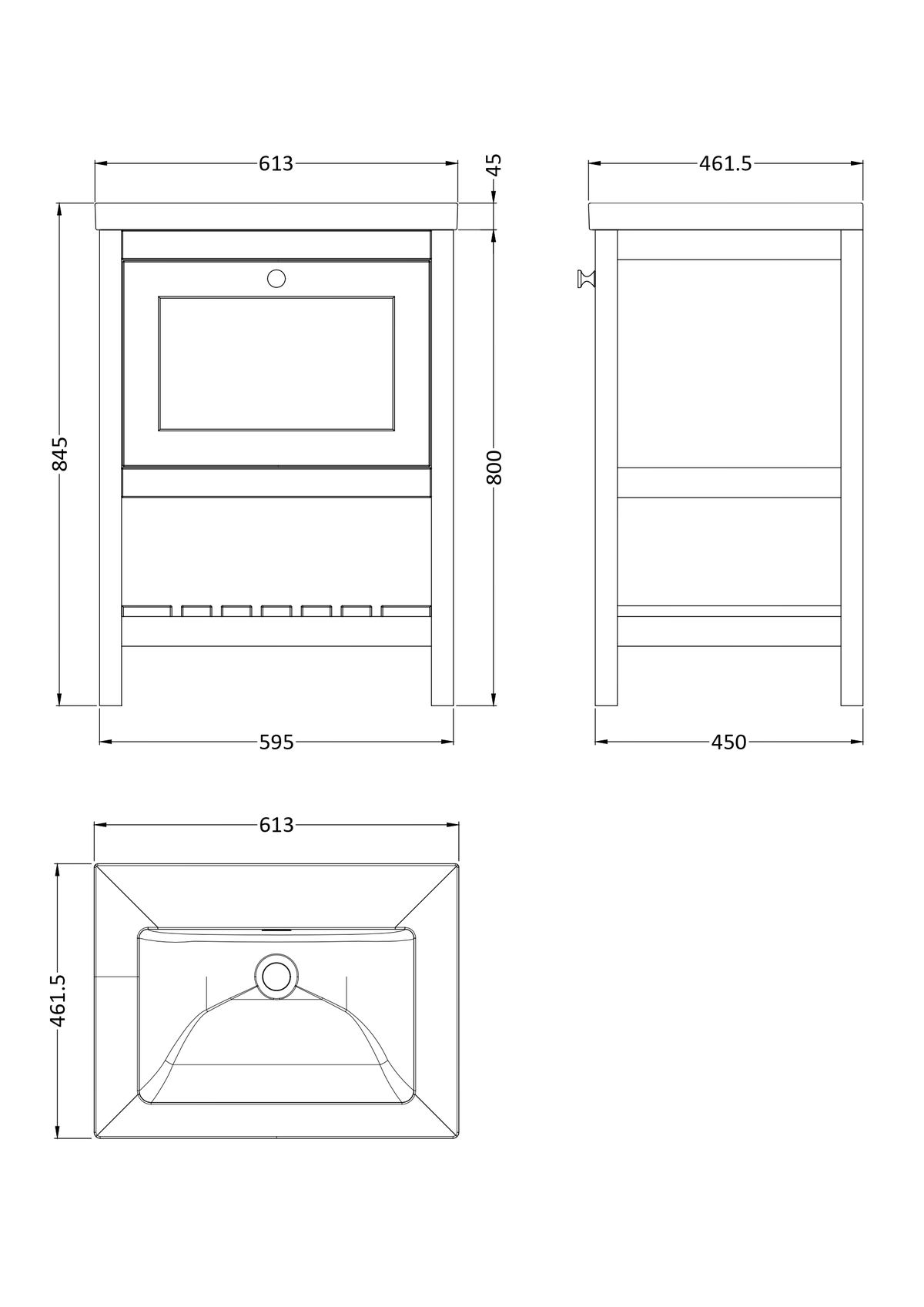 600mm Floor Standing Drawer Contemporary Basin 0TH