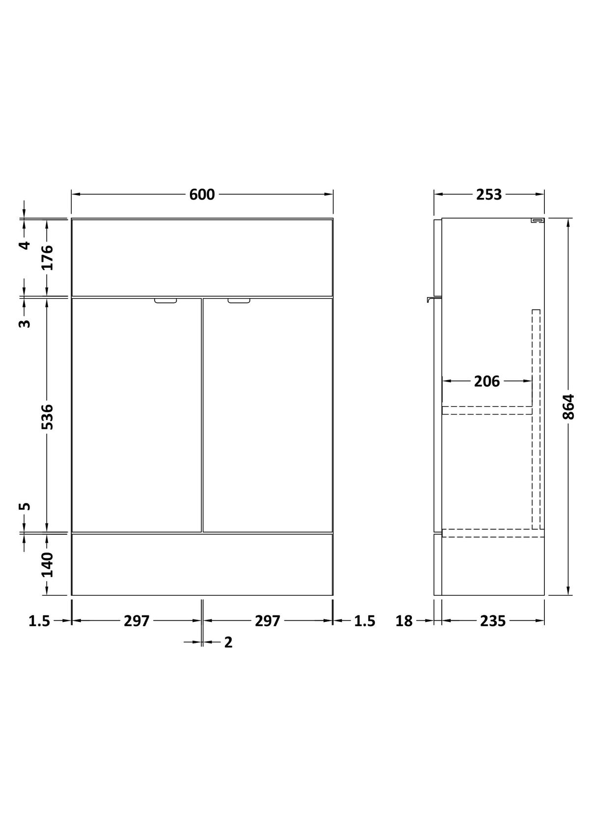 The striking finish of the Charcoal black creates a warming effect to your bathroom. Our compact units have a thinner depth, ideal for cloakrooms or smaller bathrooms. Colour co-ordinate your unit with a Charcoal black WC unit. This vanity unit can be fitted with either a polymarble basin for easy installation or a semi recessed basin and worktop for a more unique look. This unit comes with matt chrome rear fixed handles as standard, but alternative handles are available to purchase if youd prefer. This unit has soft-close doors which limits the daily wear and tear and provides a quieter closing action. This product is made here in Britain to the highest quality standard.