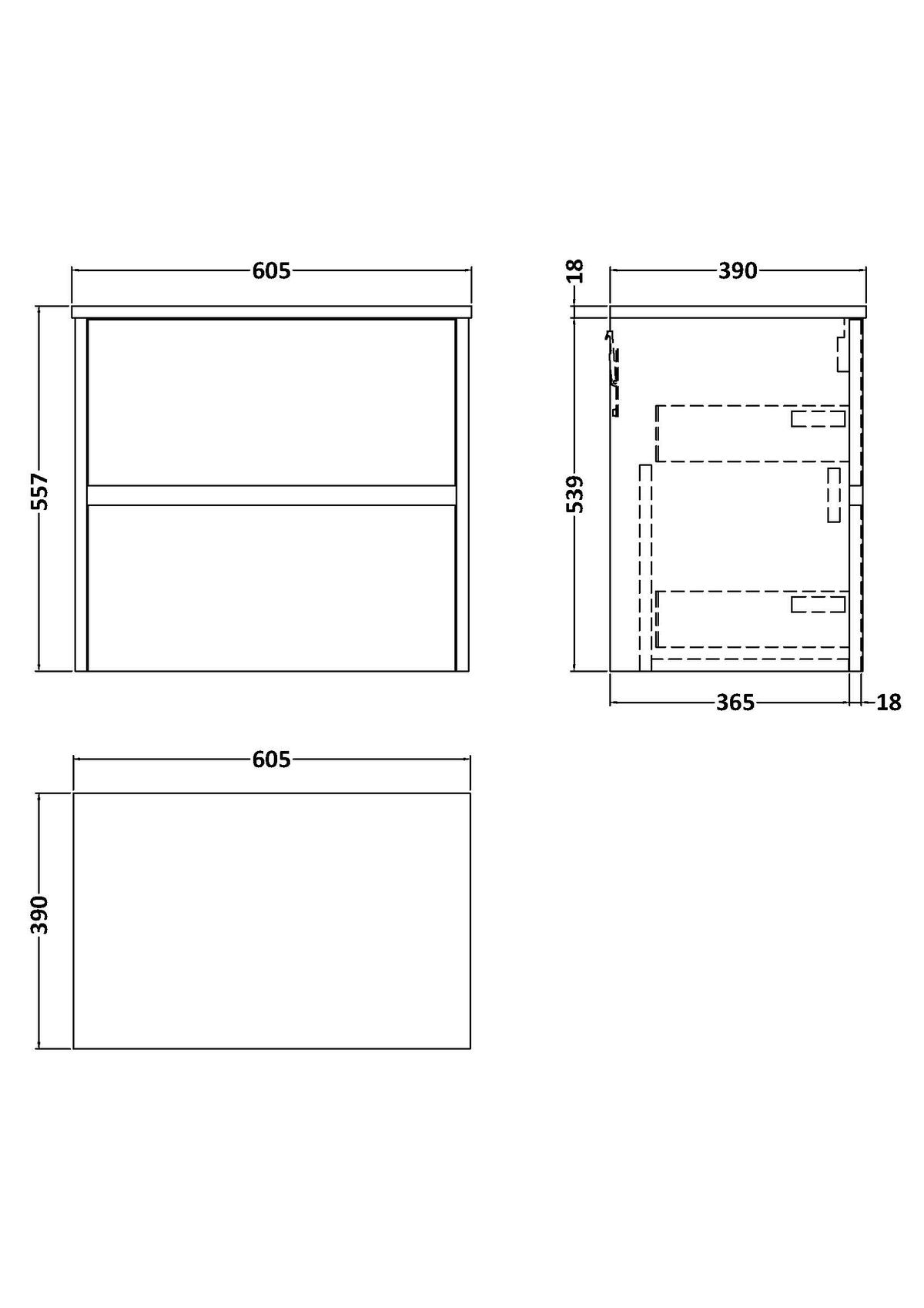 600mm Wall Hung 2-Drawer Unit & Worktop