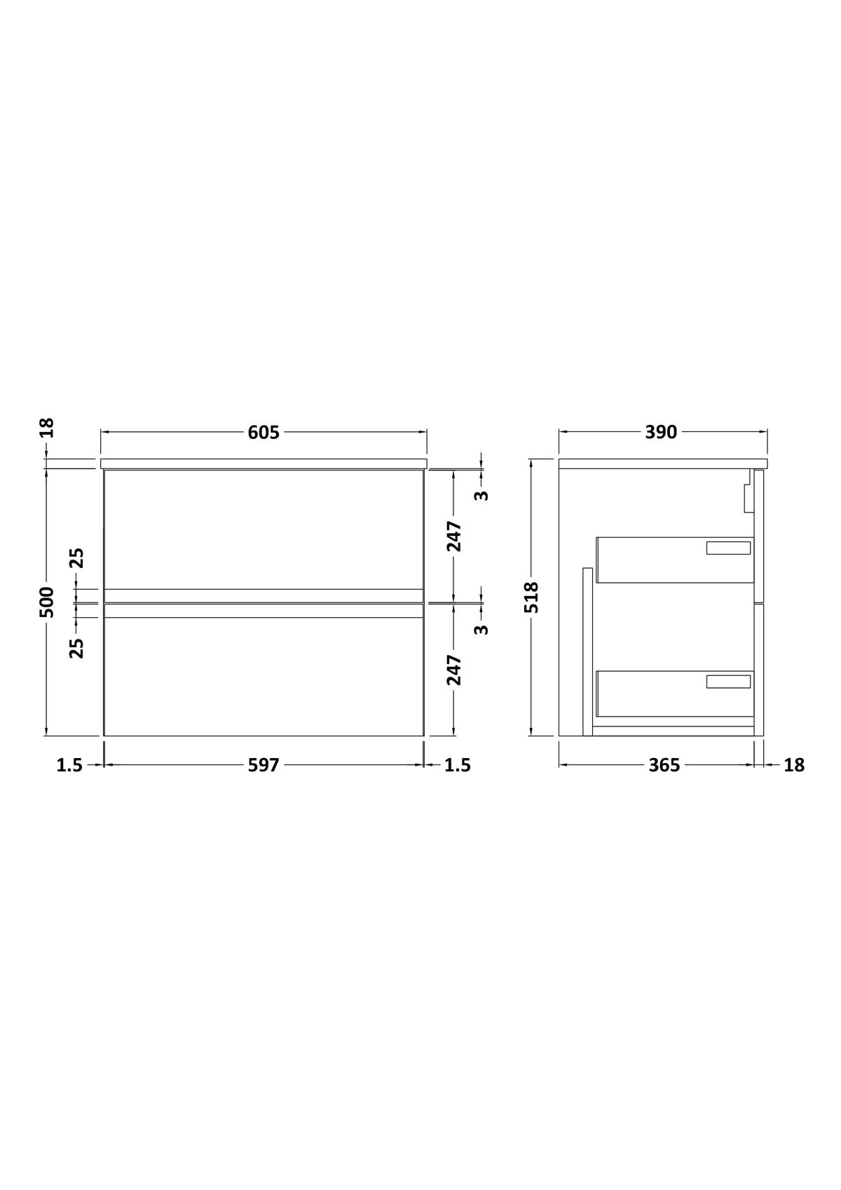 600mm Wall Hung 2-Drawer Vanity Unit & Worktop