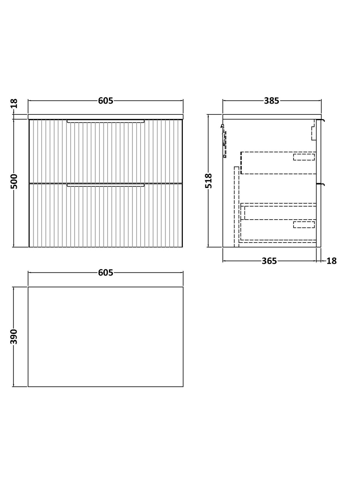 600mm Wall Hung 2 Drawer Vanity & Worktop