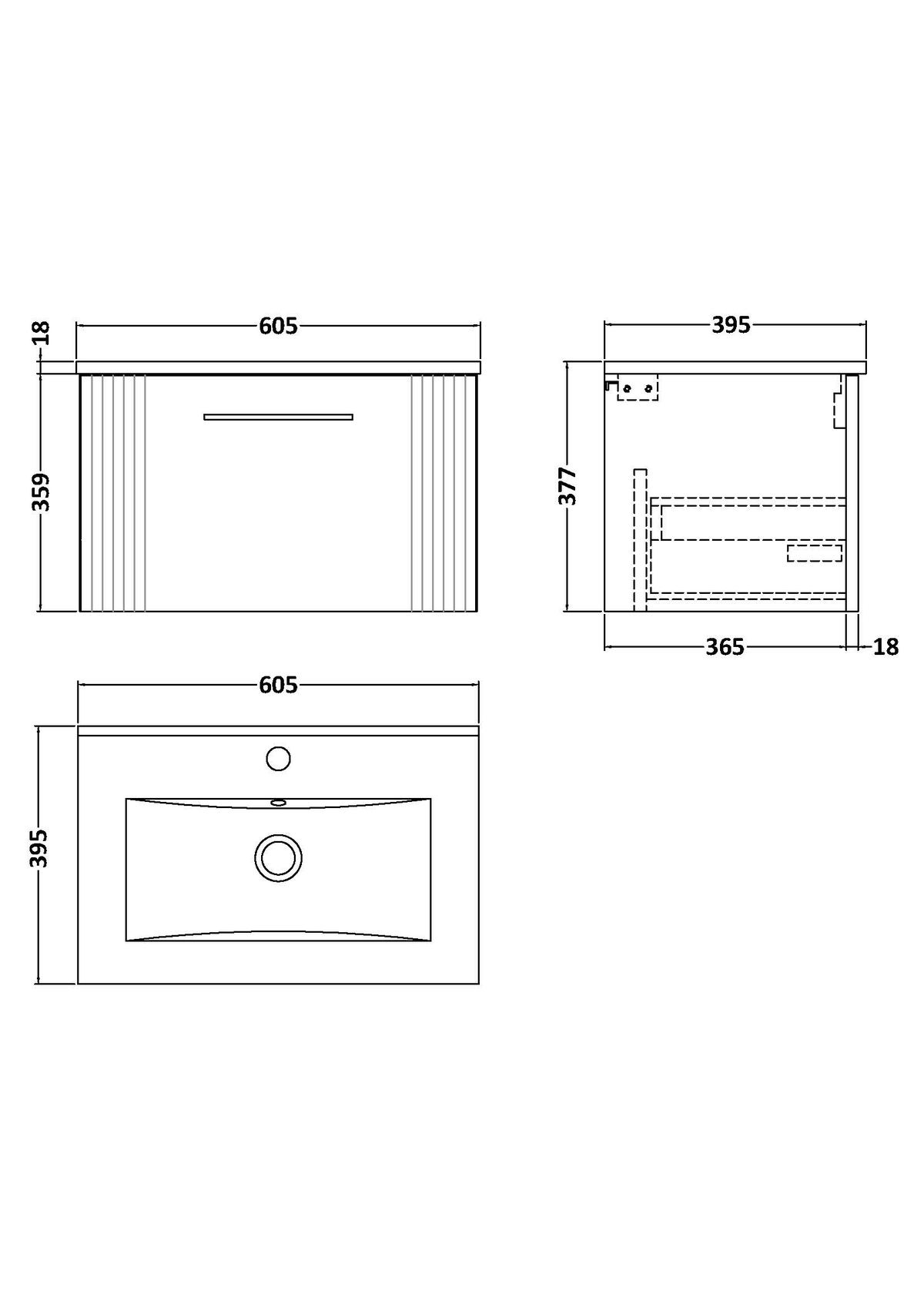 600mm Wall Hung Single Drawer Vanity & Basin 2