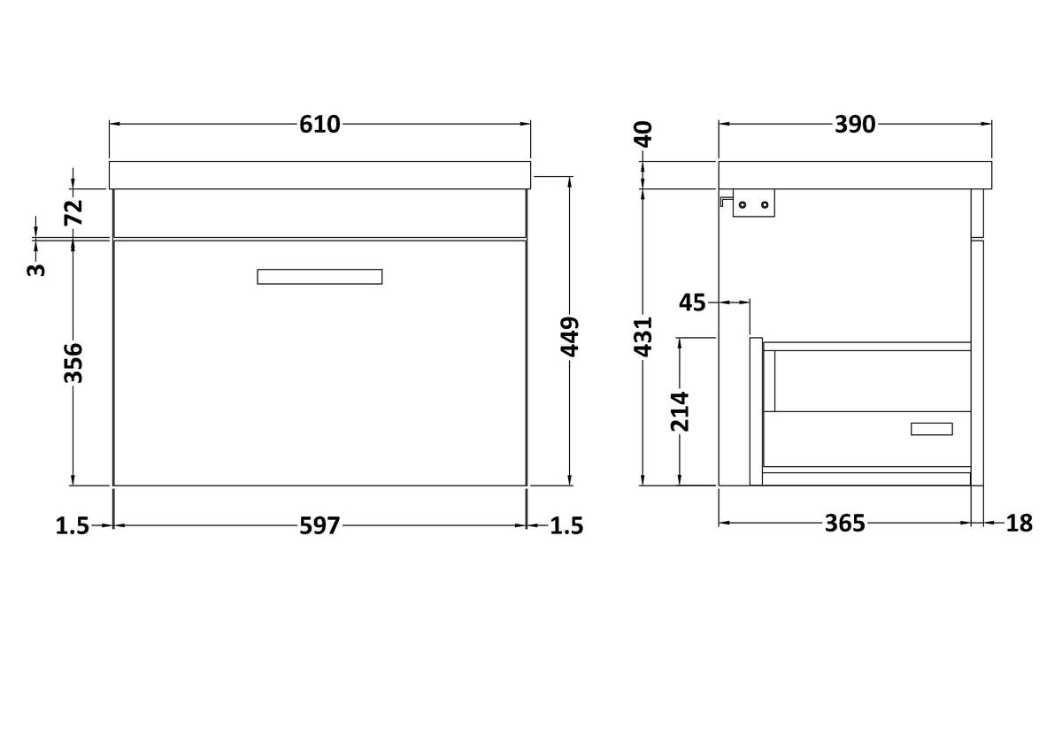 This striking Charcoal Black finish compliments any modern bathroom to create a designer look. This wall hung unit creates more space in your bathroom giving the illusion of a bigger bathroom. This unit has soft close drawers which limits the daily wear and tear and provides a quieter closing action. Colour co-ordinate your unit with a Charcoal Black WC unit. Supplied with high quality vitreous china basin.