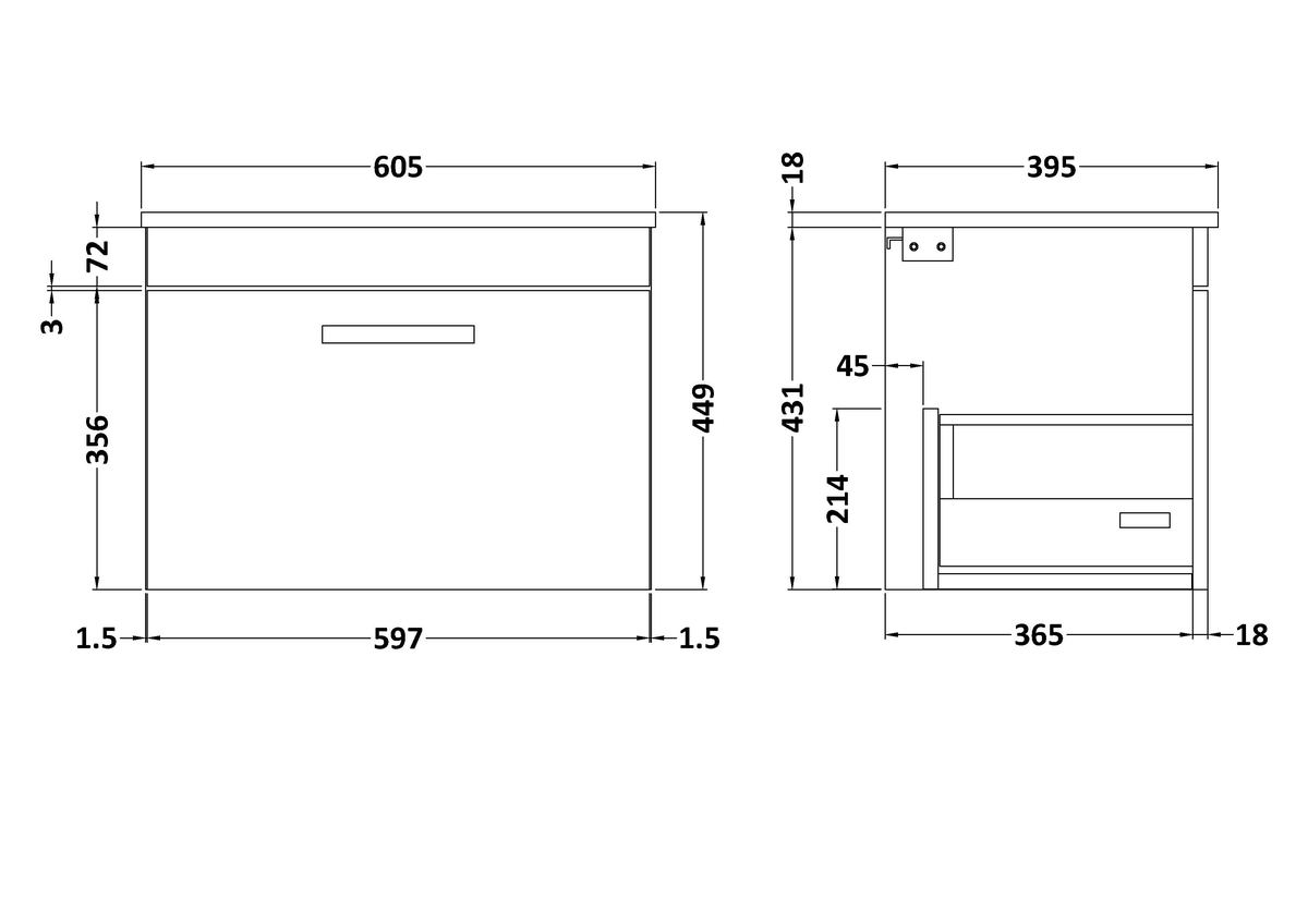This striking Charcoal Black finish compliments any modern bathroom to create a designer look. This wall hung unit creates more space in your bathroom giving the illusion of a bigger bathroom. This unit has soft close drawers which limits the daily wear and tear and provides a quieter closing action. Colour co-ordinate your unit with a Charcoal Black WC unit. Supplied with high quality vitreous china basin.