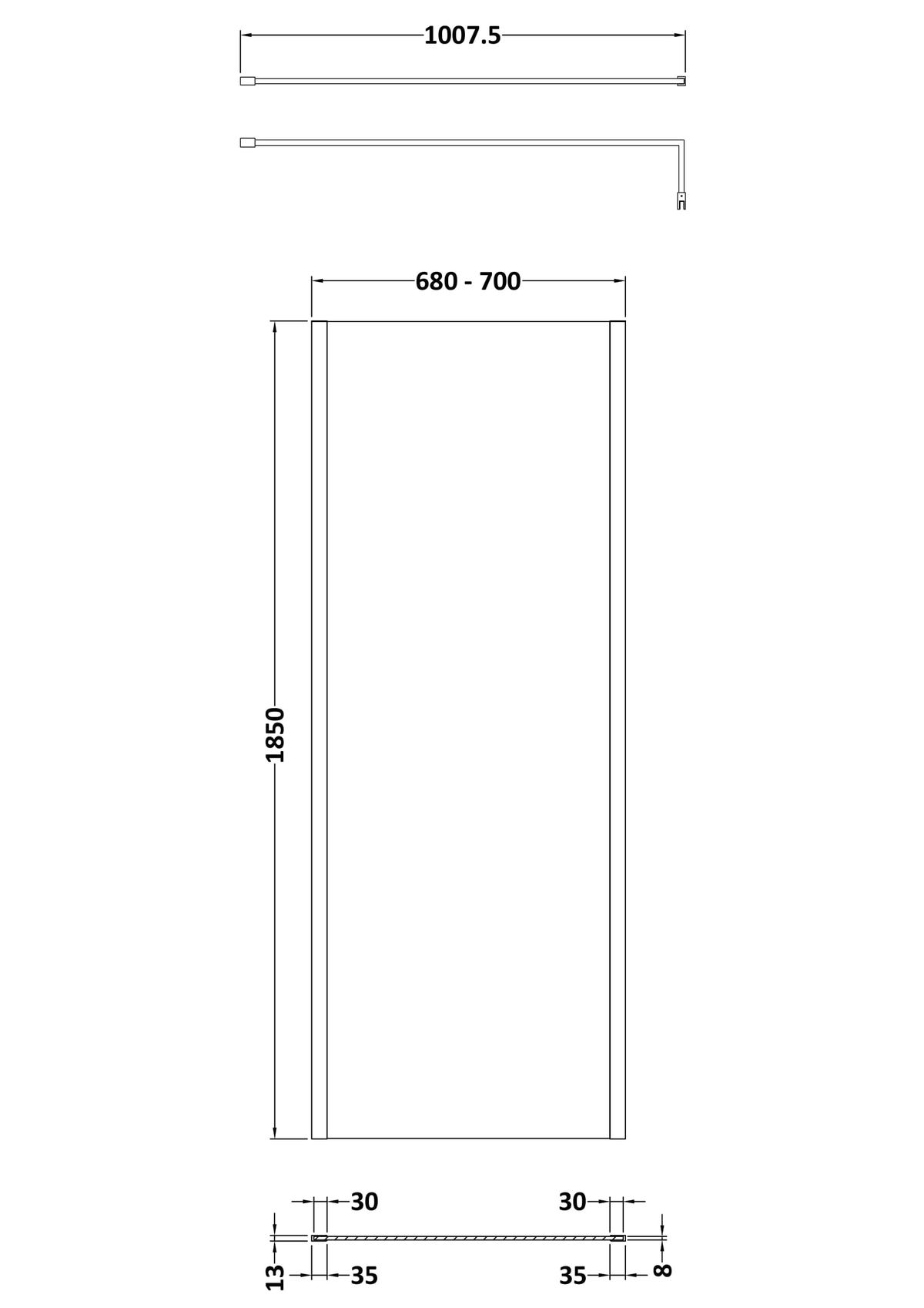 700mm Wetroom Screen Outer Frame 1850x8mm – Brushed Pewter