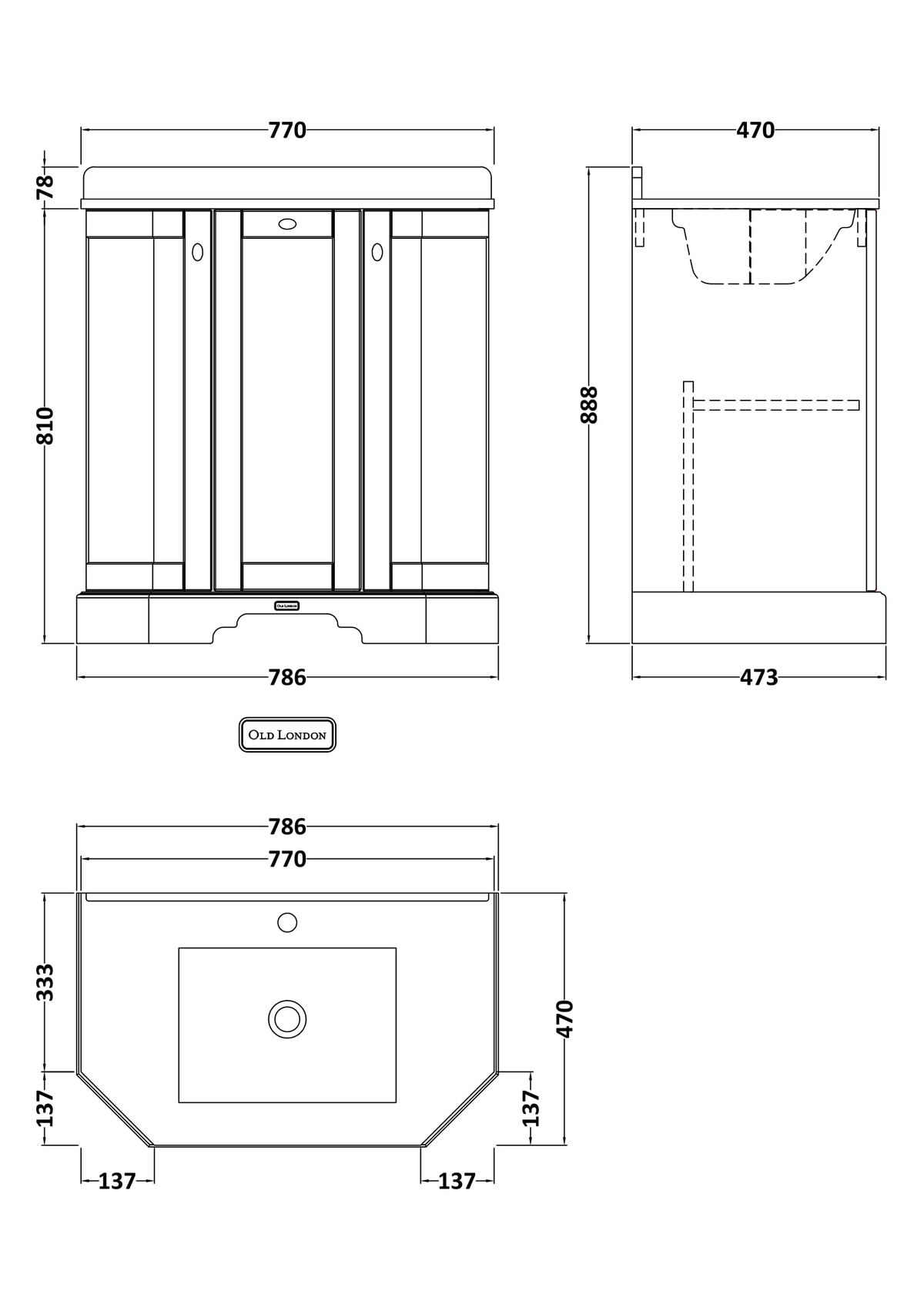 750mm 3-Door Angled Unit & Marble Top 1TH