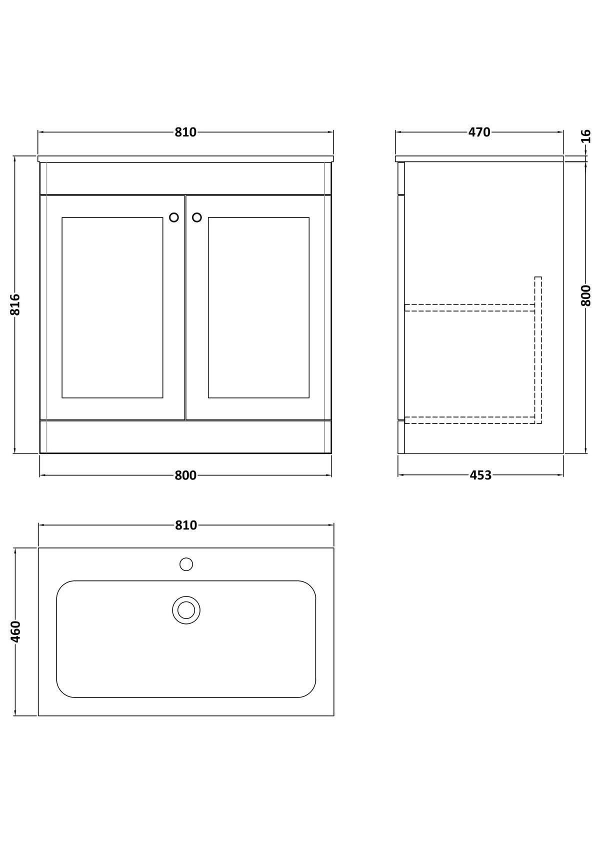 800mm Floor Standing 2-Door Unit & Stone Basin 1TH