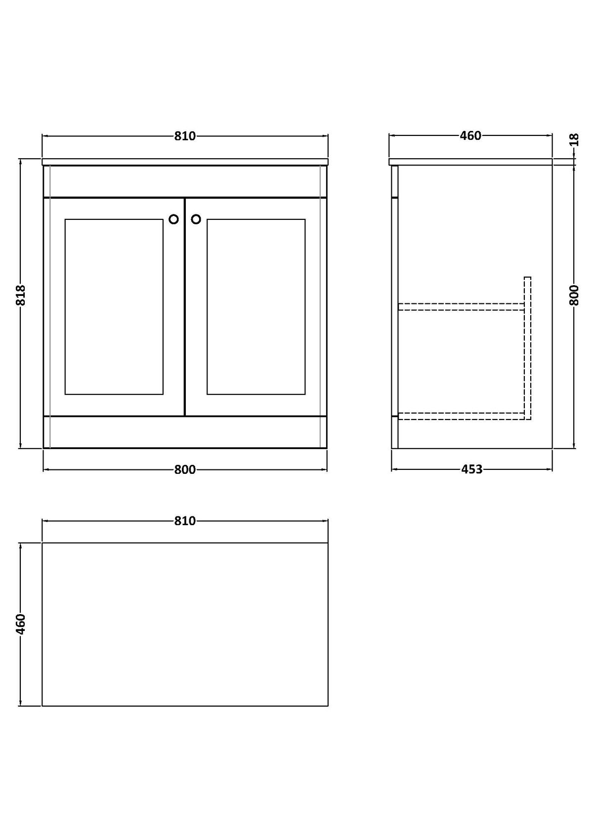 800mm Floor Standing 2-Door Vanity with Marble Top