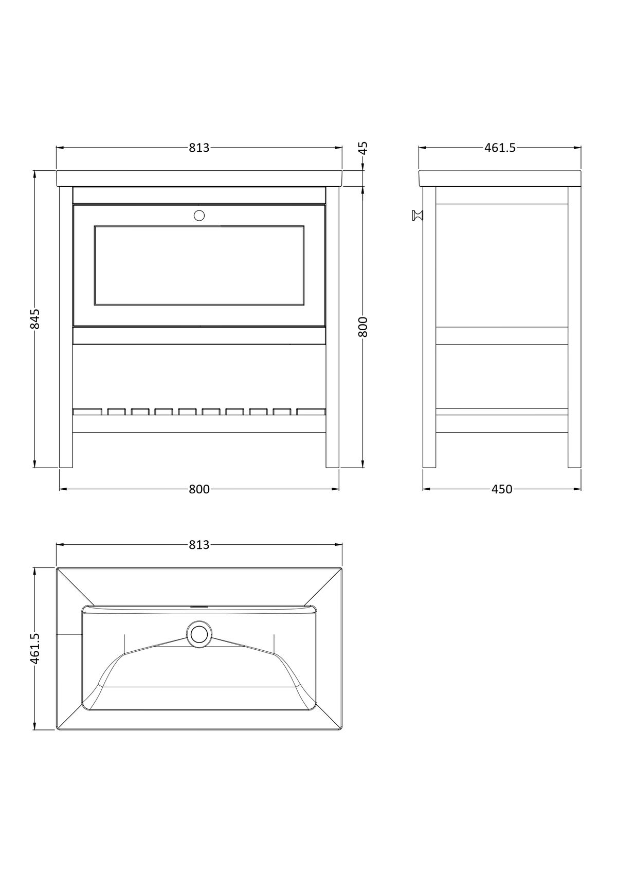800mm Floor Standing Drawer Contemporary Basin 0TH