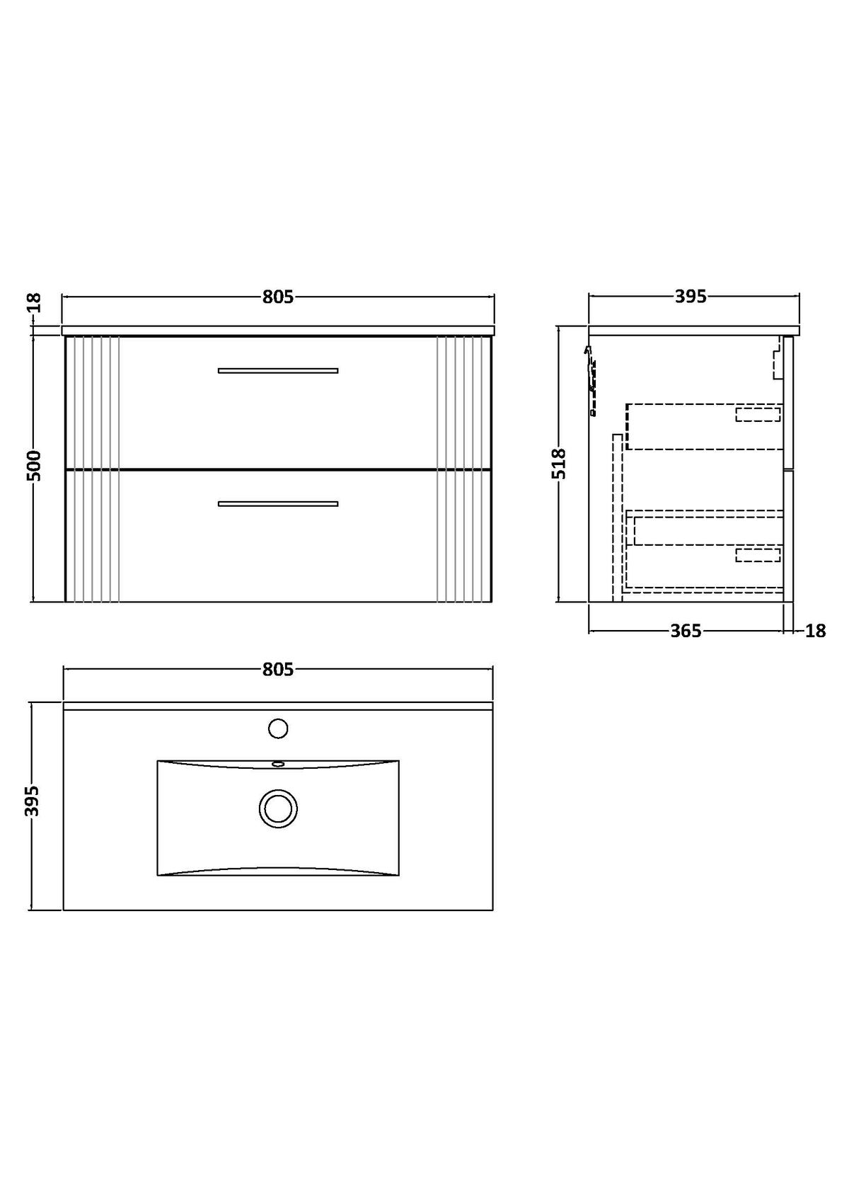 800mm Wall Hung 2 Drawer Vanity & Basin 2