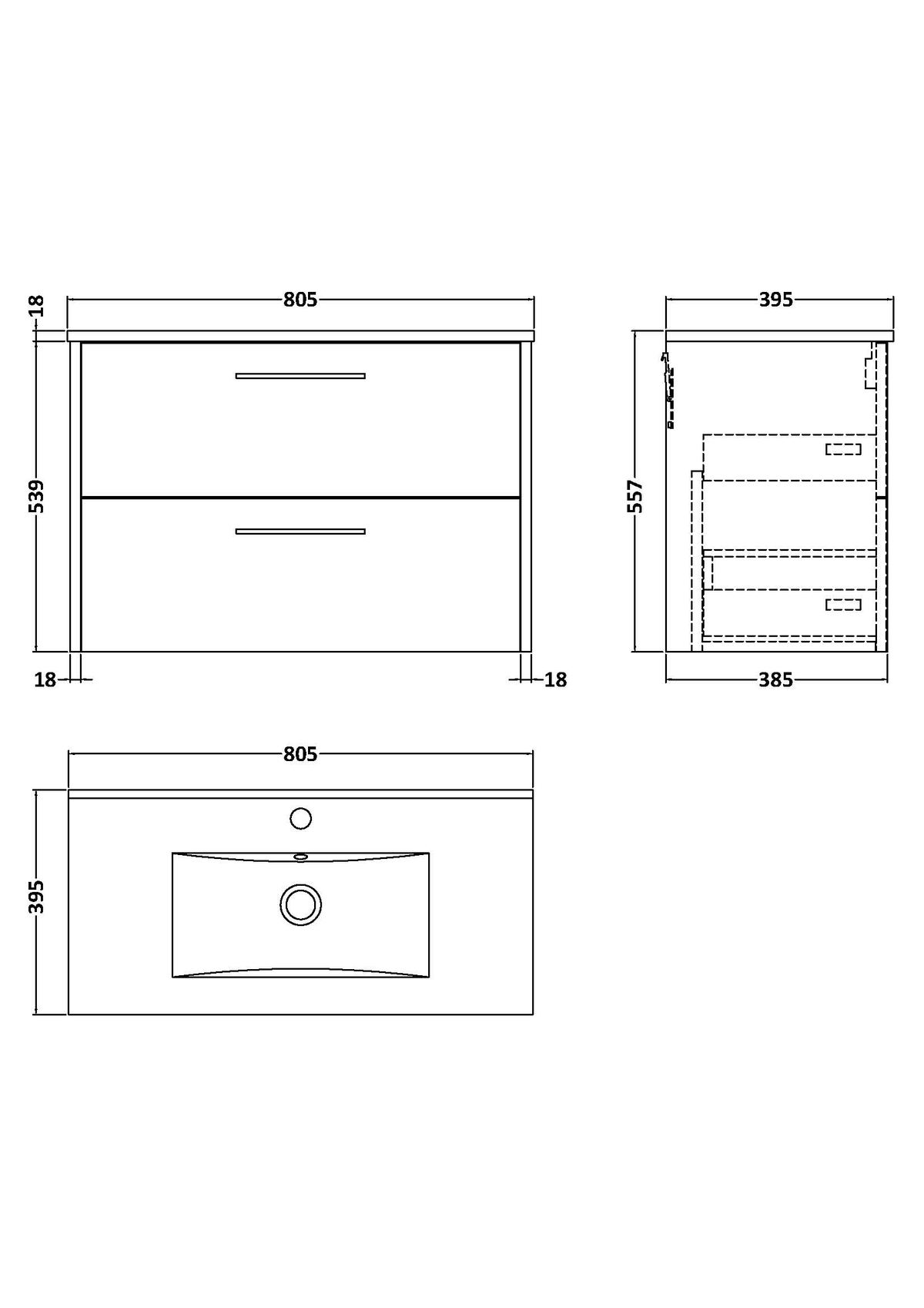 800mm Wall Hung 2 Drawer Vanity & Basin 2