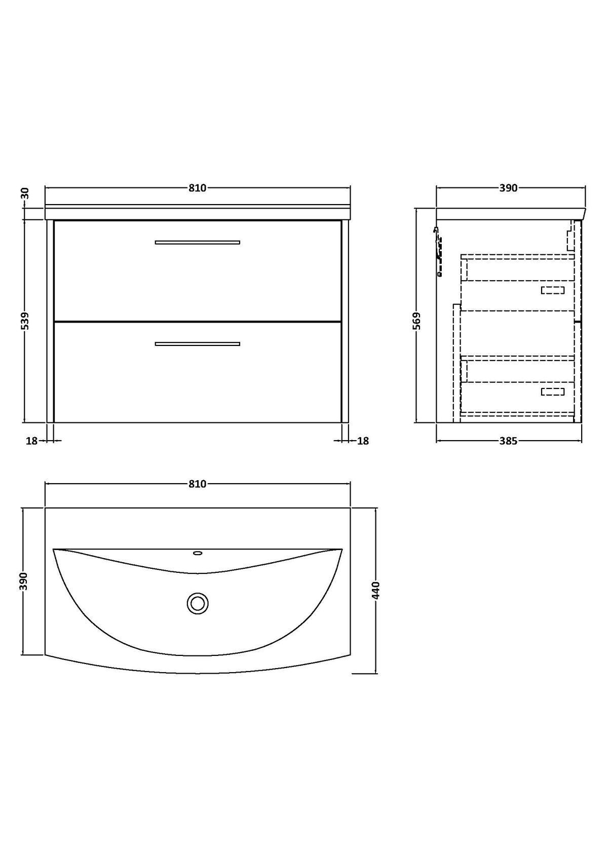 800mm Wall Hung 2 Drawer Vanity & Basin 4