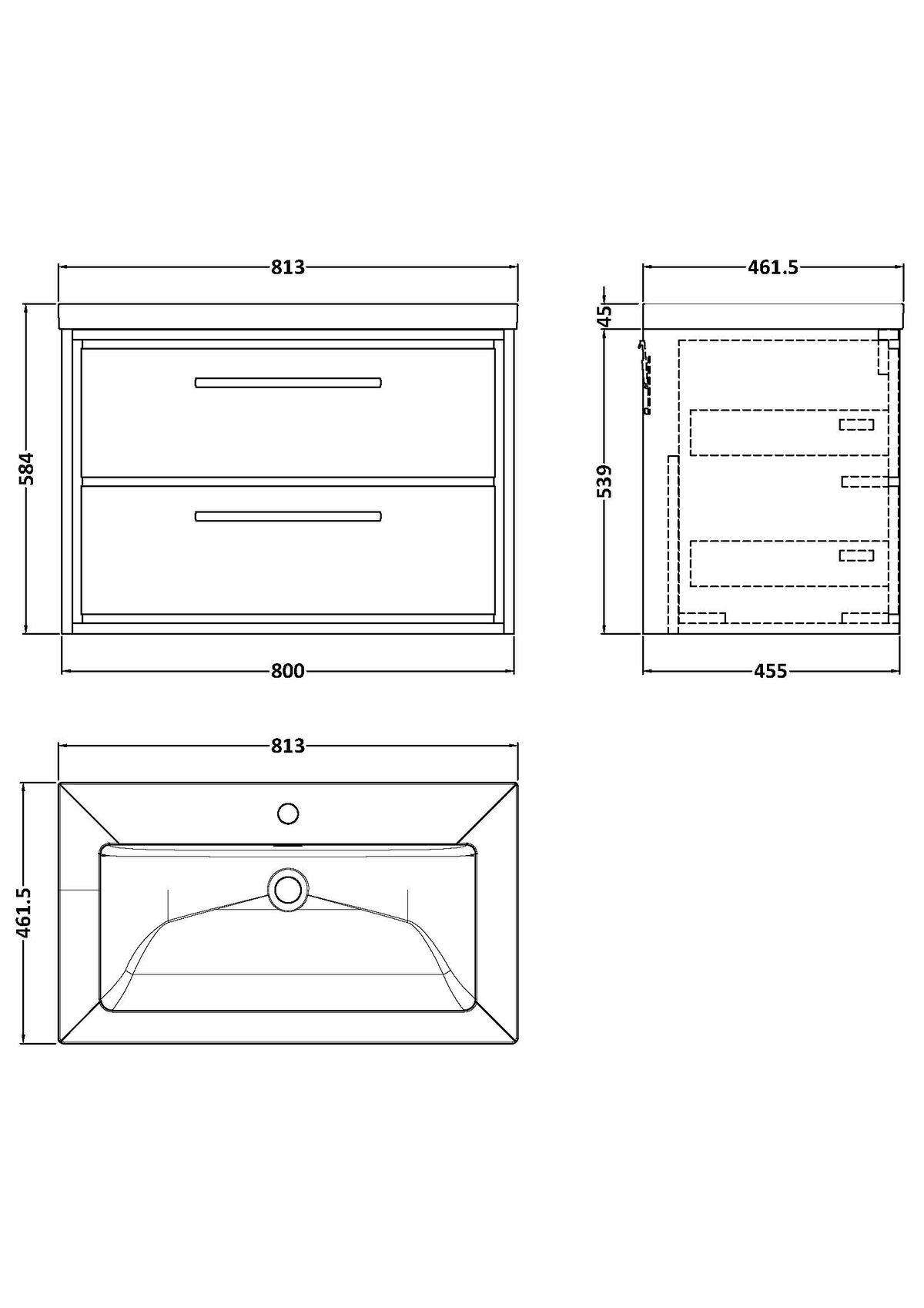 800mm Wall Hung 2-Drawer Vanity with Basin – 1 Tap Hole
