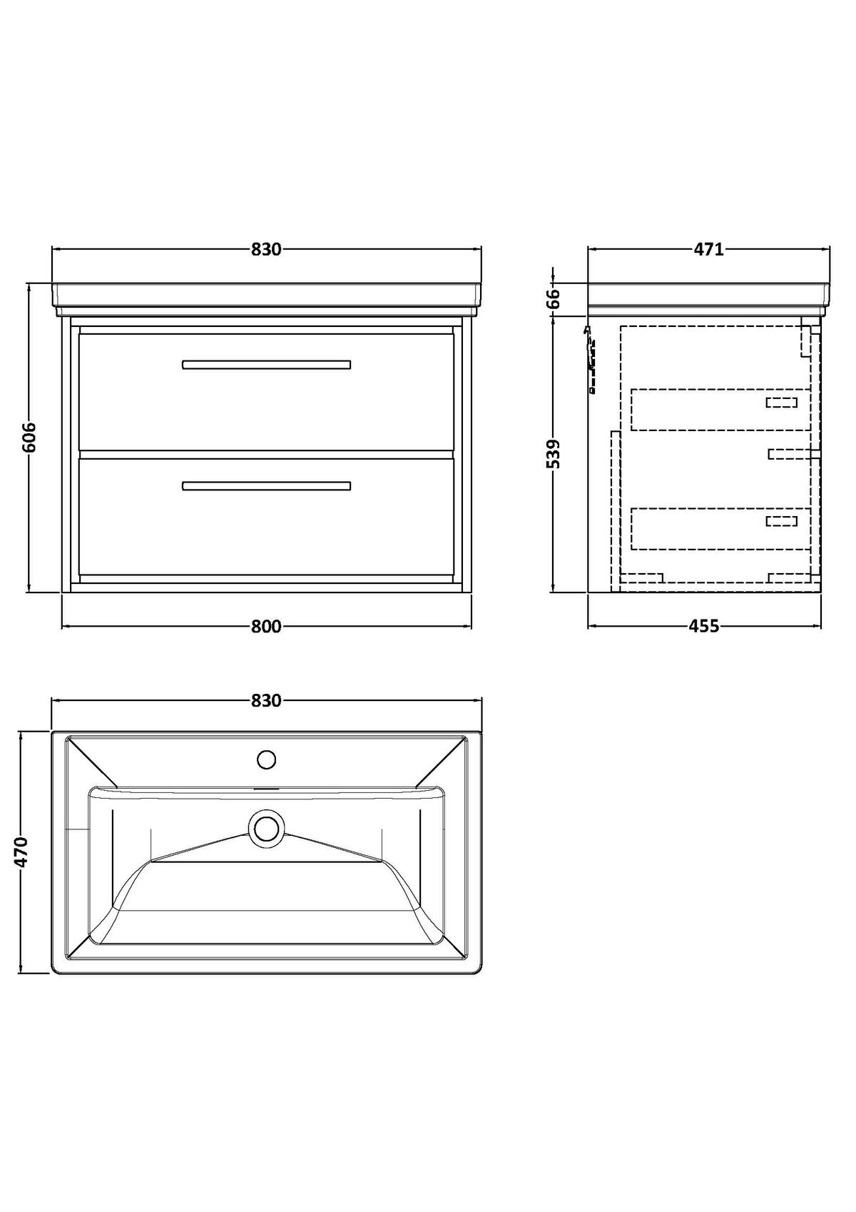 800mm Wall Hung 2-Drawer Vanity with Basin – 1 Tap Hole