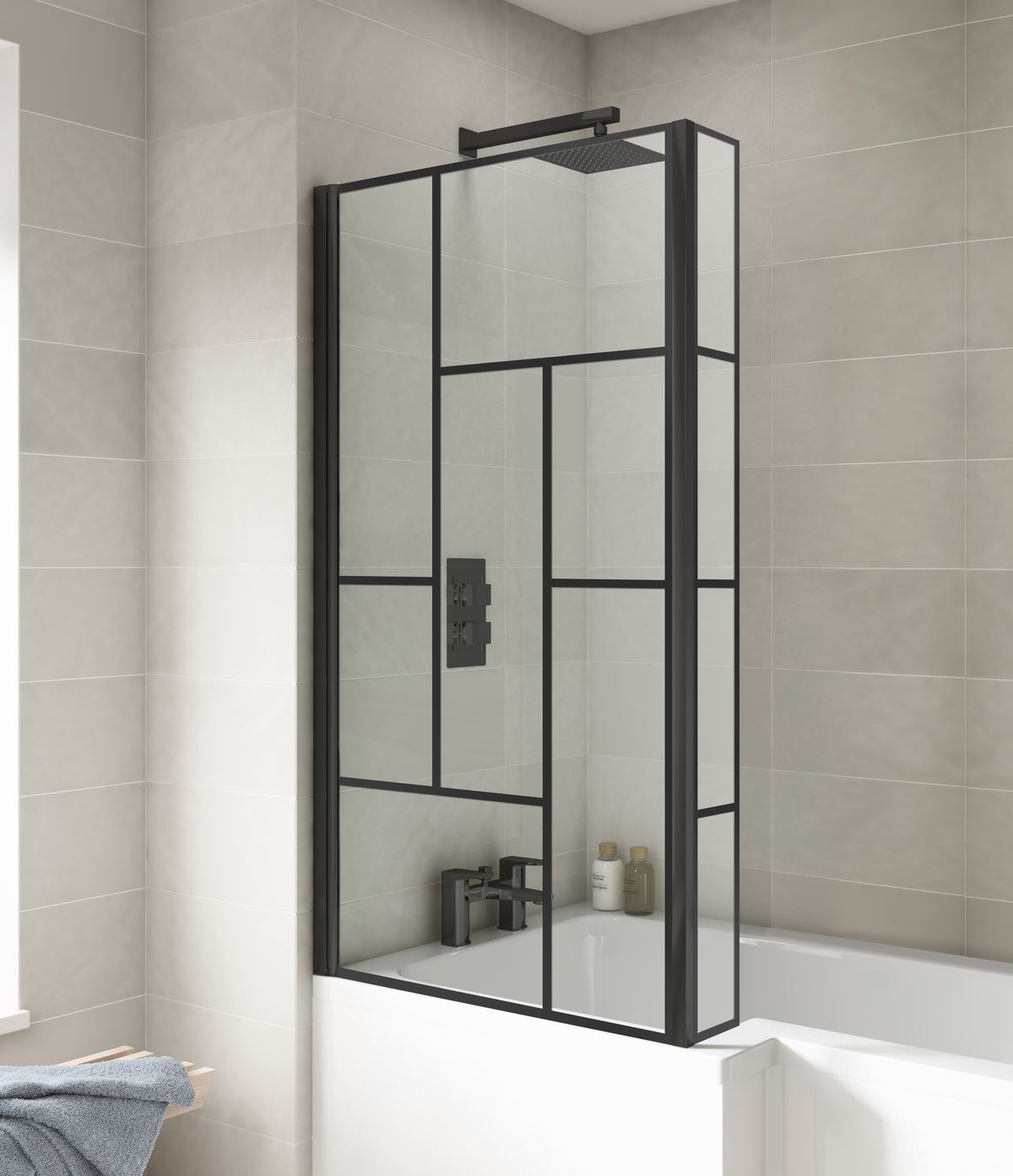 Impressive black finish. Utilise space in your bathroom and create a showering space within your bath. Every bath screen is reversible in order to perfectly fit your needs. This screen is made of 6mm toughened safety glass. Suitable for use with square shower baths.