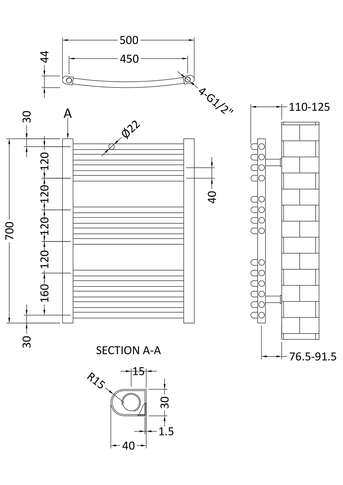 Elegant lines and a contemporary finish make this towel rail the perfect on trend addition to your bathroom. Suitable for use with heating elements. All heating products come complete with fixing screws. Valves & brackets sold separately. After installing any new radiators; when refilling the system it is recommended a suitable inhibitor is used. All tappings are 1/2″ British Standard Pipe. We recommend pipework is not installed until receipt of radiator or heated towel rail.