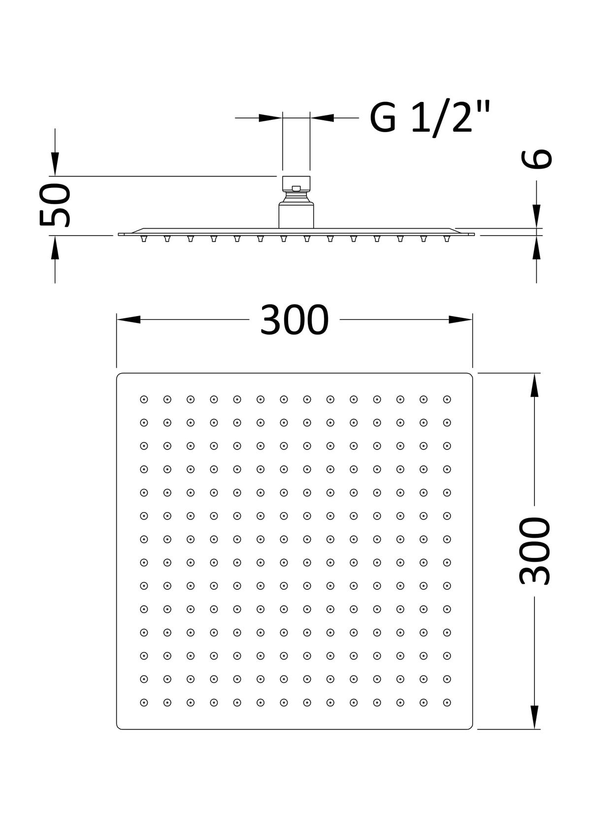 Square minimalist design. Manufactured from stainless steel for durability. Suitable for wall mounted or ceiling arms.